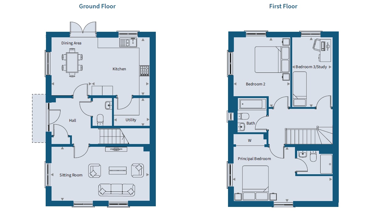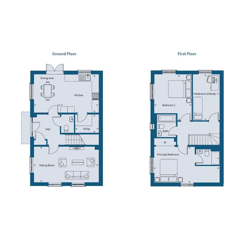 The Willow is a spacious and modern three-bedroom home for growing families, with an impressive open-plan kitchen and dining area with double doors to the rear of the house and garden and a separate utility room, as well as a separate sitting room for entertaining.
