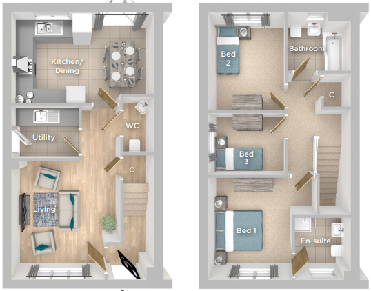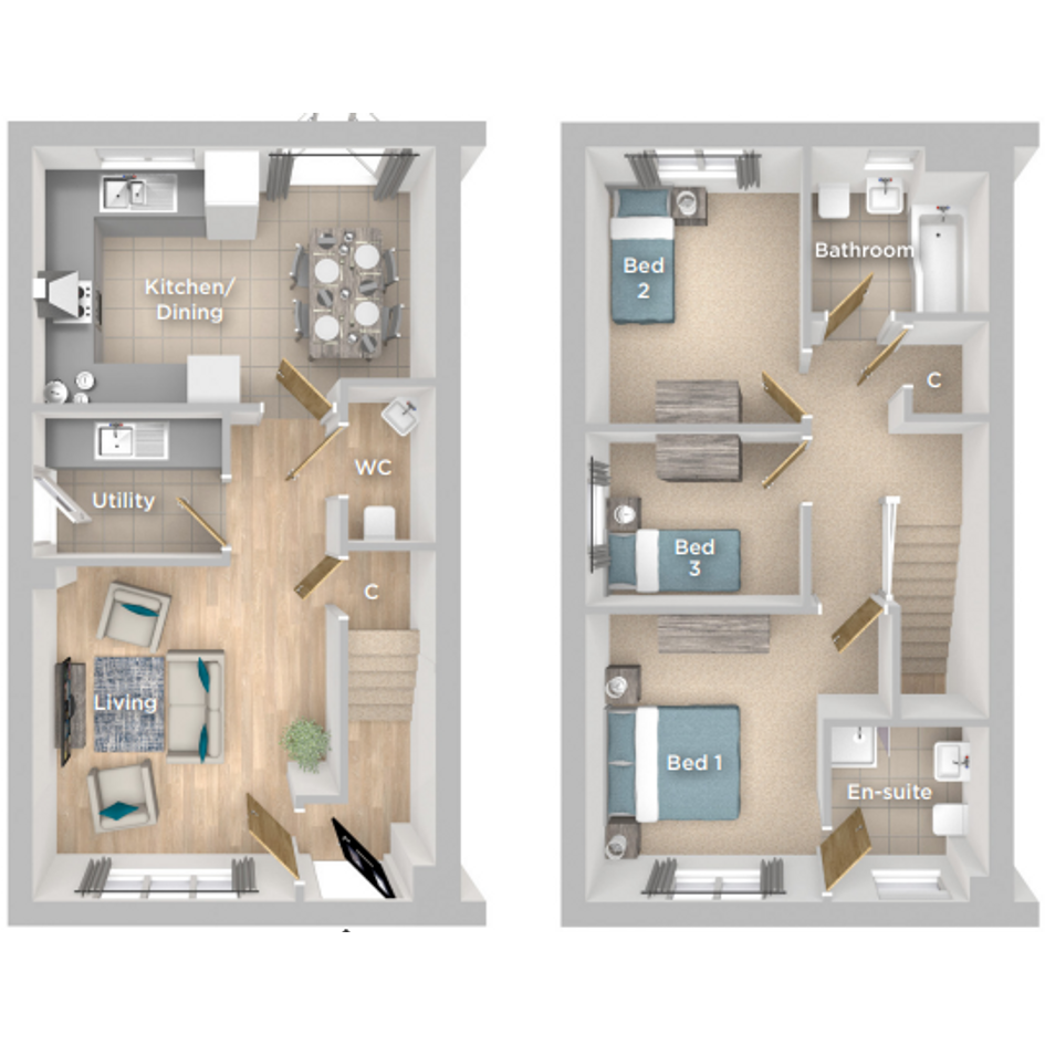 The Sandringham is a stylish three bedroom semi-detached home comprising of a well appointed modern kitchen/dining layout with double door access to the turfed rear garden and spacious living area. In between the Living area and kitchen/diner is a utility room and opposite is the downstairs W/C.