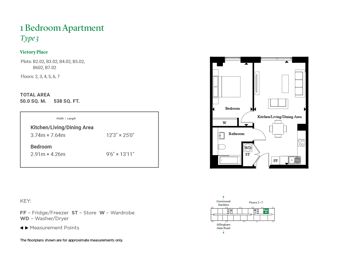 Plot B3.02 is a new 1 bedroom Shared Ownership apartment located on the third floor of Victory Place. This 545 sqft home features an open plan kitchen/dining/living area with lots of natural light, a range of integrated appliances plus a washer/dryer in the utility cupboard, fitted wardrobes to the bedroom, a private balcony and access to beautiful communal gardens.
