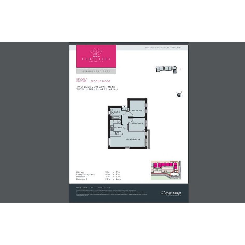 Moat is pleased to present to the market this well presented two bedroom ground floor apartment situated on the Springhead Park development built around 2018 in the heart of the Ebbsfleet City Garden. The property itself is approximately 55sqm and comprises of an entrance hallway with storage cupboard, open plan living / dining / kitchen area, two bedrooms, family bathroom and double-glazed unit throughout. The property also benefits from an allocated parking space. There are several schools in the local area including Springhead Park Primary which is 0.2 miles away and Cooperfield Academy approx. one and a half miles away. Bluewater shopping centre approx. 4 miles away with a wide selection of shops, restaurants and leisure facilities including cinema complex. Ebbsfleet International is a mile away with high-speed rail links to London and the continent. Fastrack B bus links from the development. The property is conveniently situated for access onto the M25 and A2 for London and the coast.