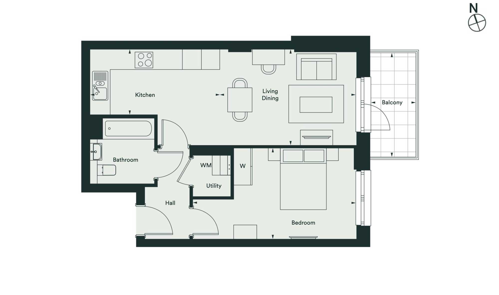 These Enfield Shared Ownership properties feature sleek design elements ensuring comfort and practicality. Each flat comes with Amtico flooring in the living room, hallway and kitchen, wool-mix carpets in the bedrooms, and ceramic tiles on the floor and walls in the bathroom. Kitchens include integrated oven, hob and extractor hood, microwave, fridge/freezer, and dishwasher. Washing machines are freestanding and located in the utility cupboard.