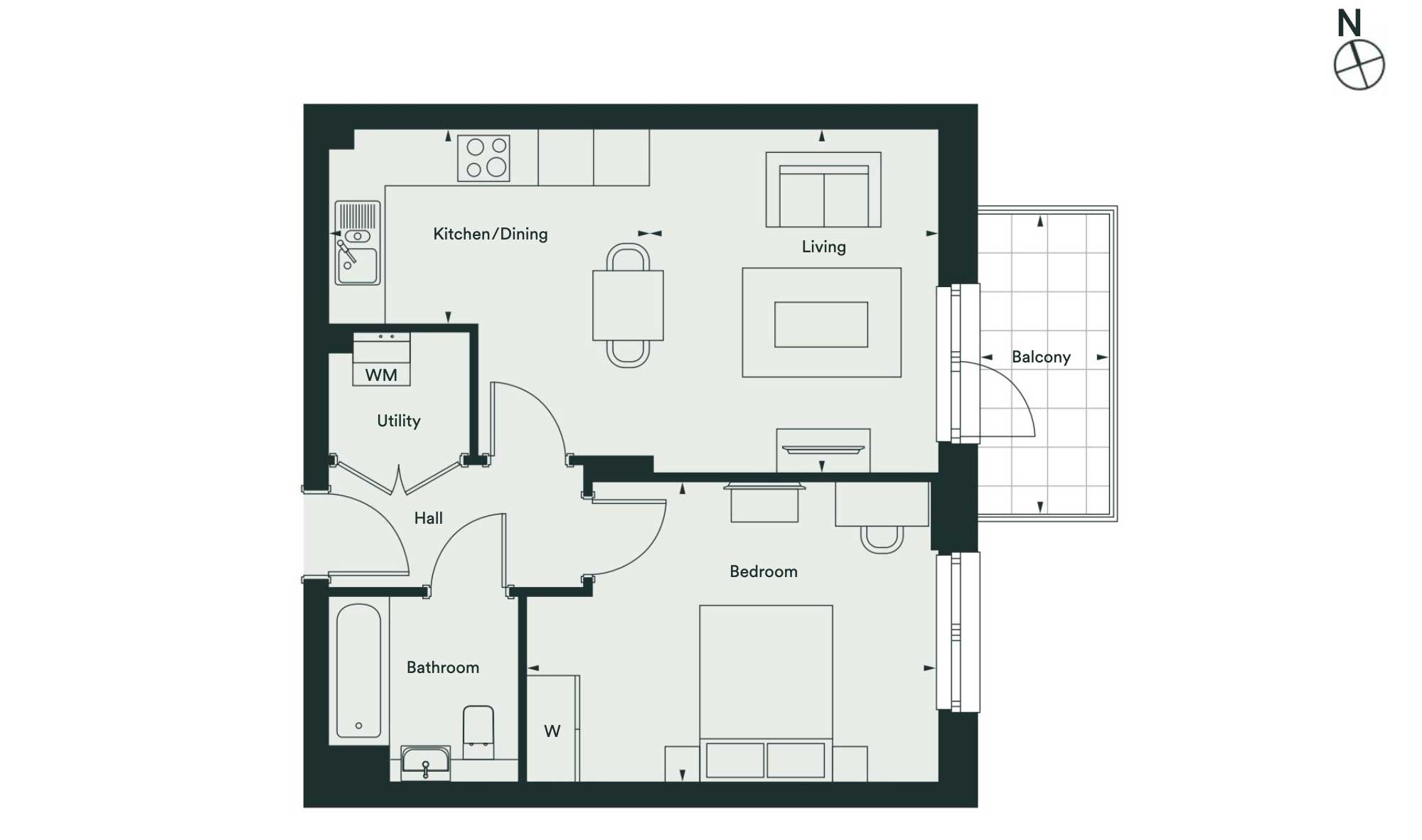 These Enfield Shared Ownership properties feature sleek design elements ensuring comfort and practicality. Each flat comes with Amtico flooring in the living room, hallway and kitchen, wool-mix carpets in the bedrooms, and ceramic tiles on the floor and walls in the bathroom. Kitchens include integrated oven, hob and extractor hood, microwave, fridge/freezer, and dishwasher. Washing machines are freestanding and located in the utility cupboard.