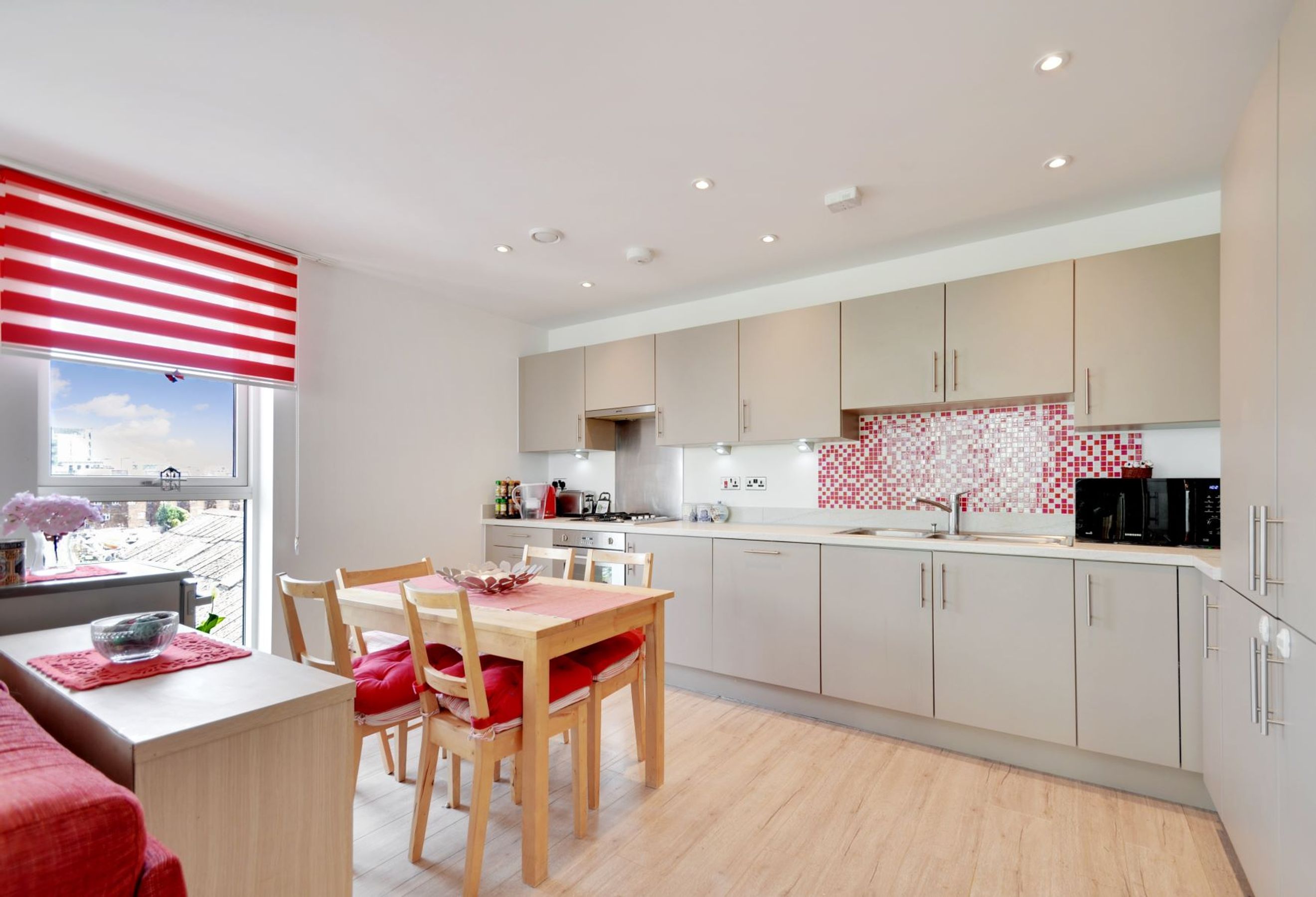- Integrated appliances in very good condition stainless steel oven, hob, cooker hood, washing machine and fridge-freezer and dishwasher