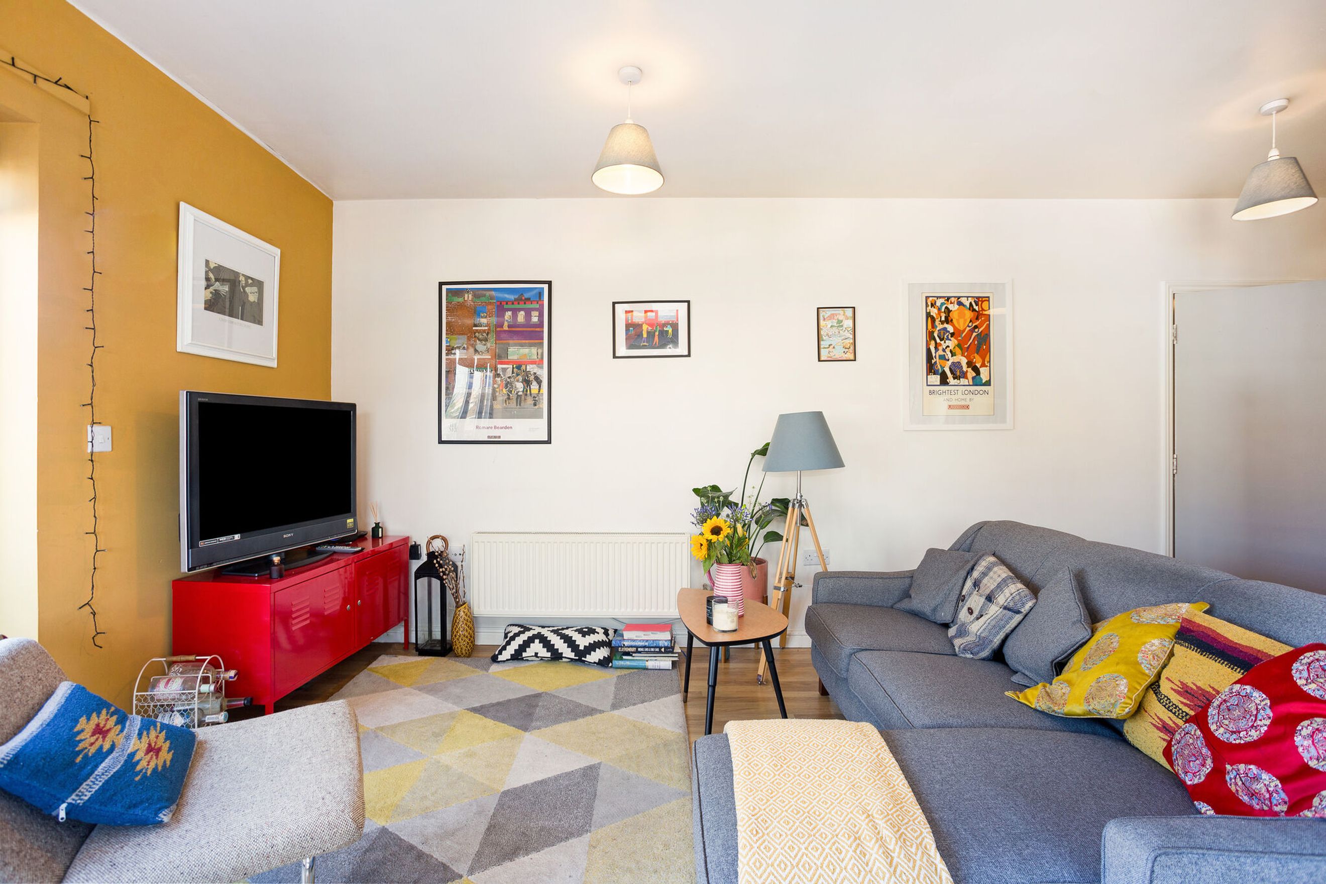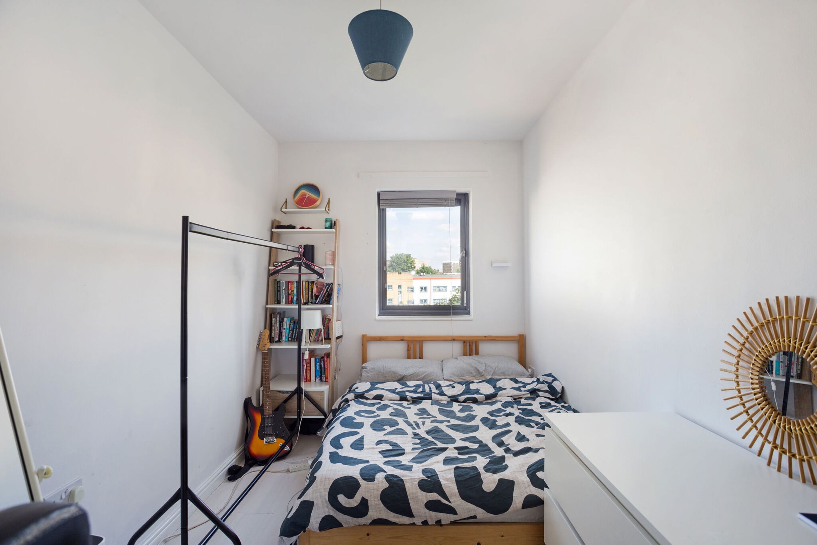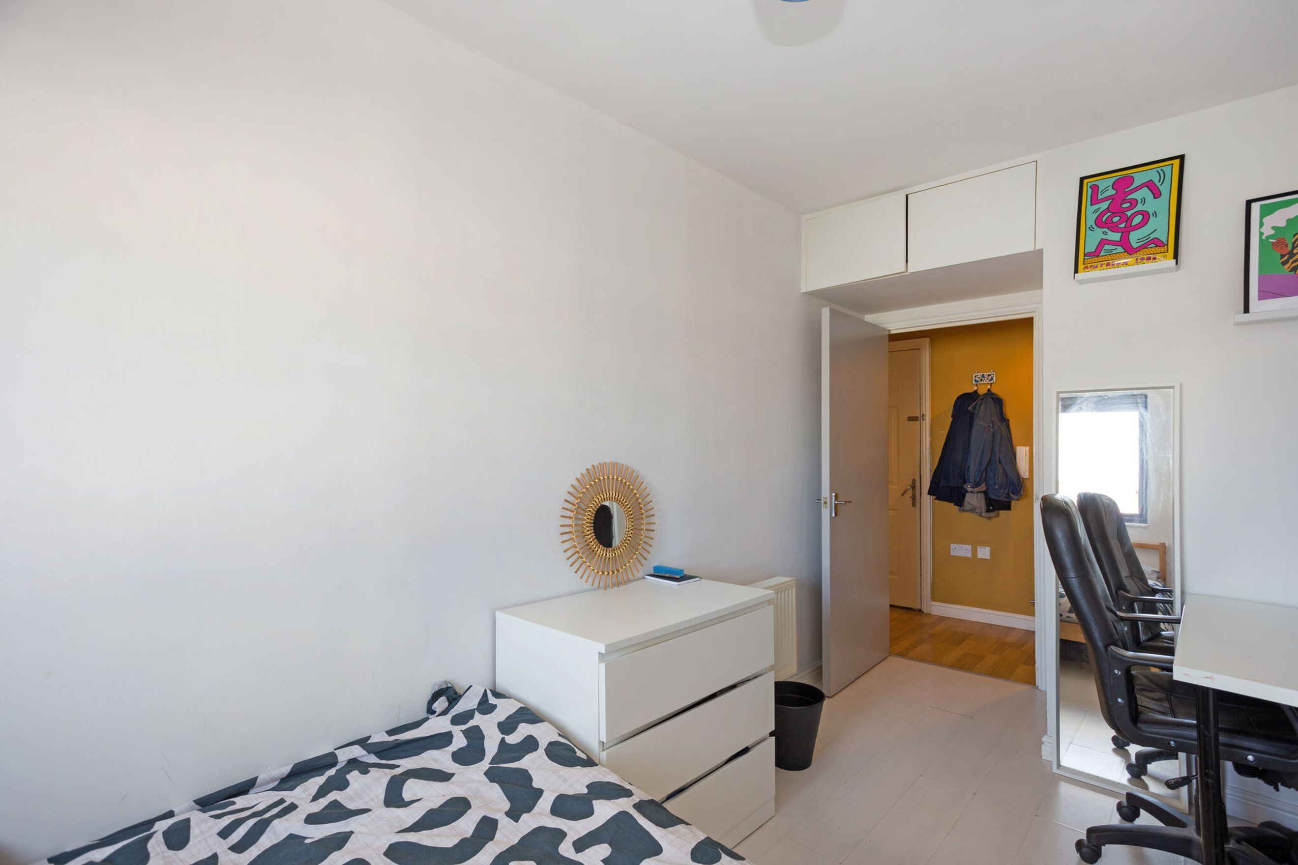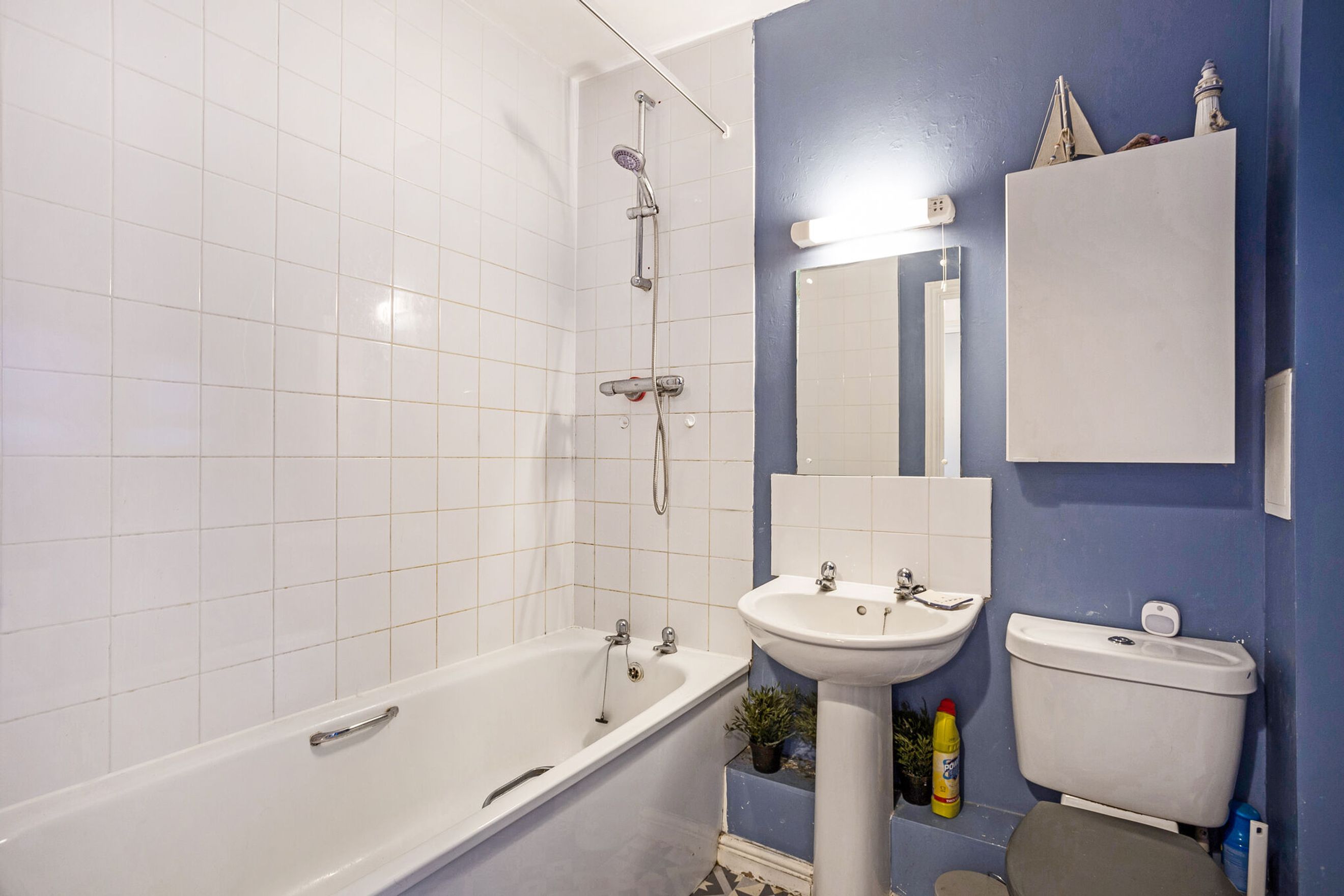 Completing the apartment is a contemporary bathroom with a shower over the bath, combining practicality with a sleek finish.