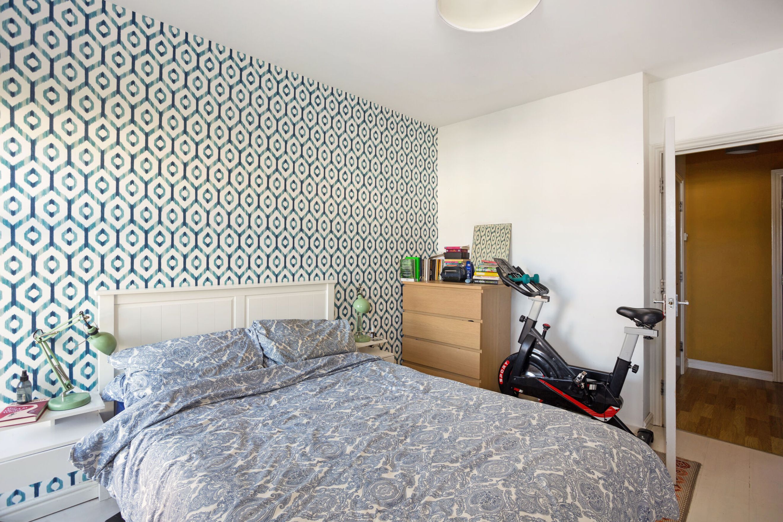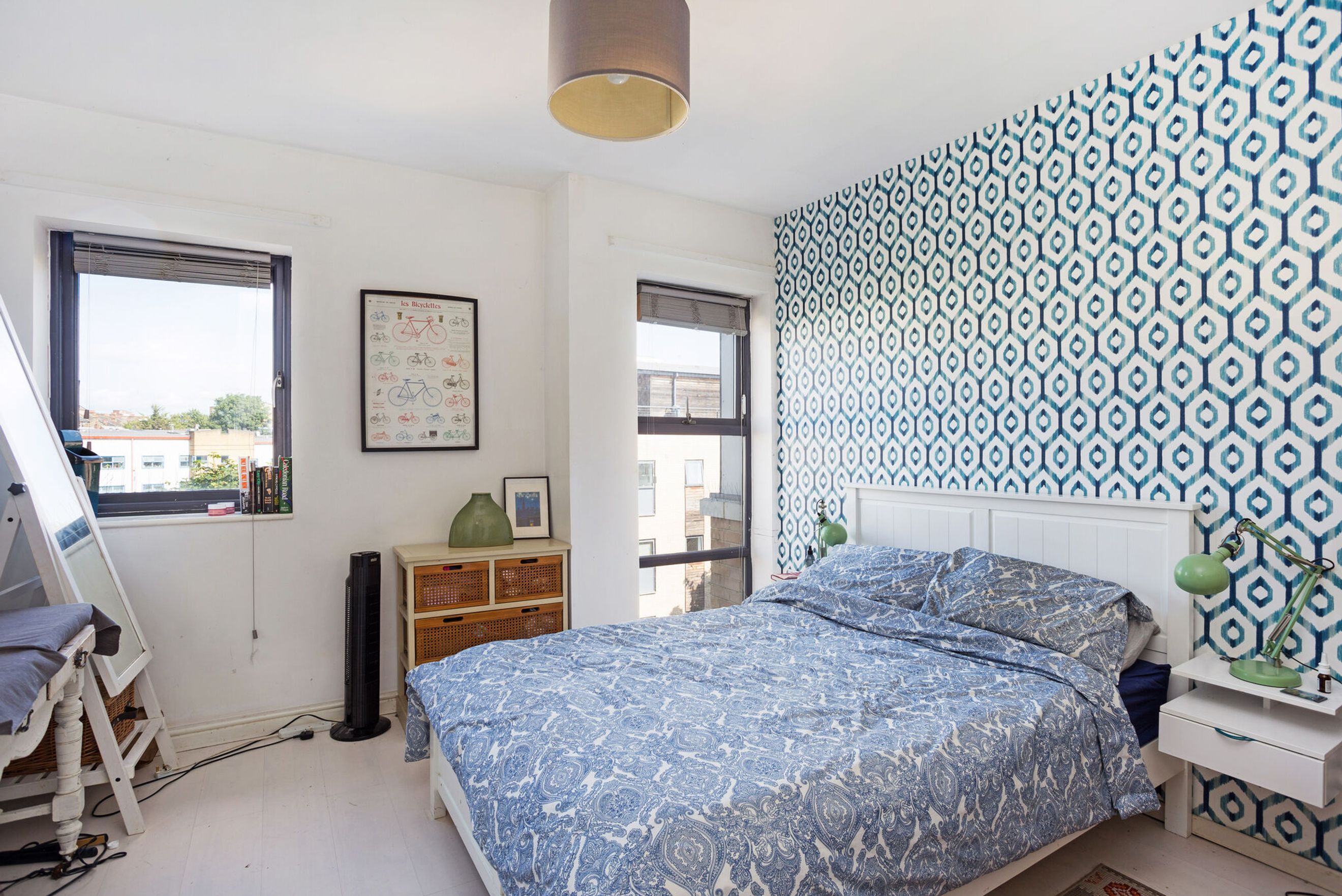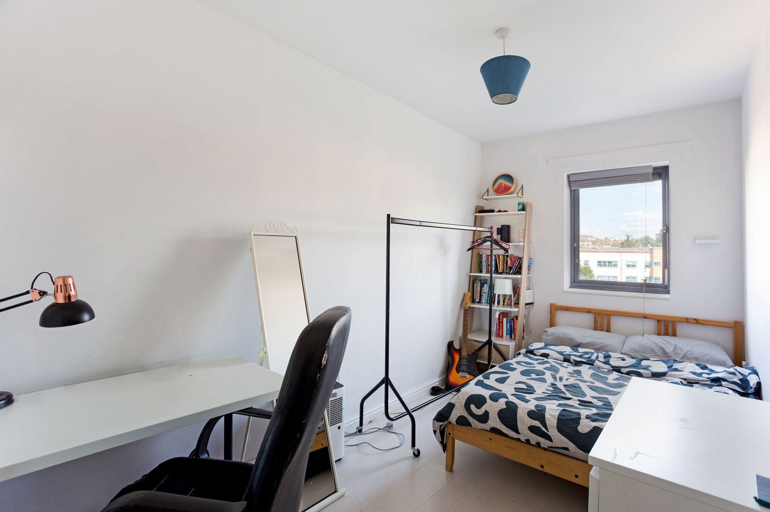 The master bedroom offers plenty of space for furniture and storage, enhanced by large windows that flood the room with natural light. It also features a built-in double wardrobe for added convenience. The second bedroom is a versatile space, suitable as a guest room, home office, or additional bedroom.