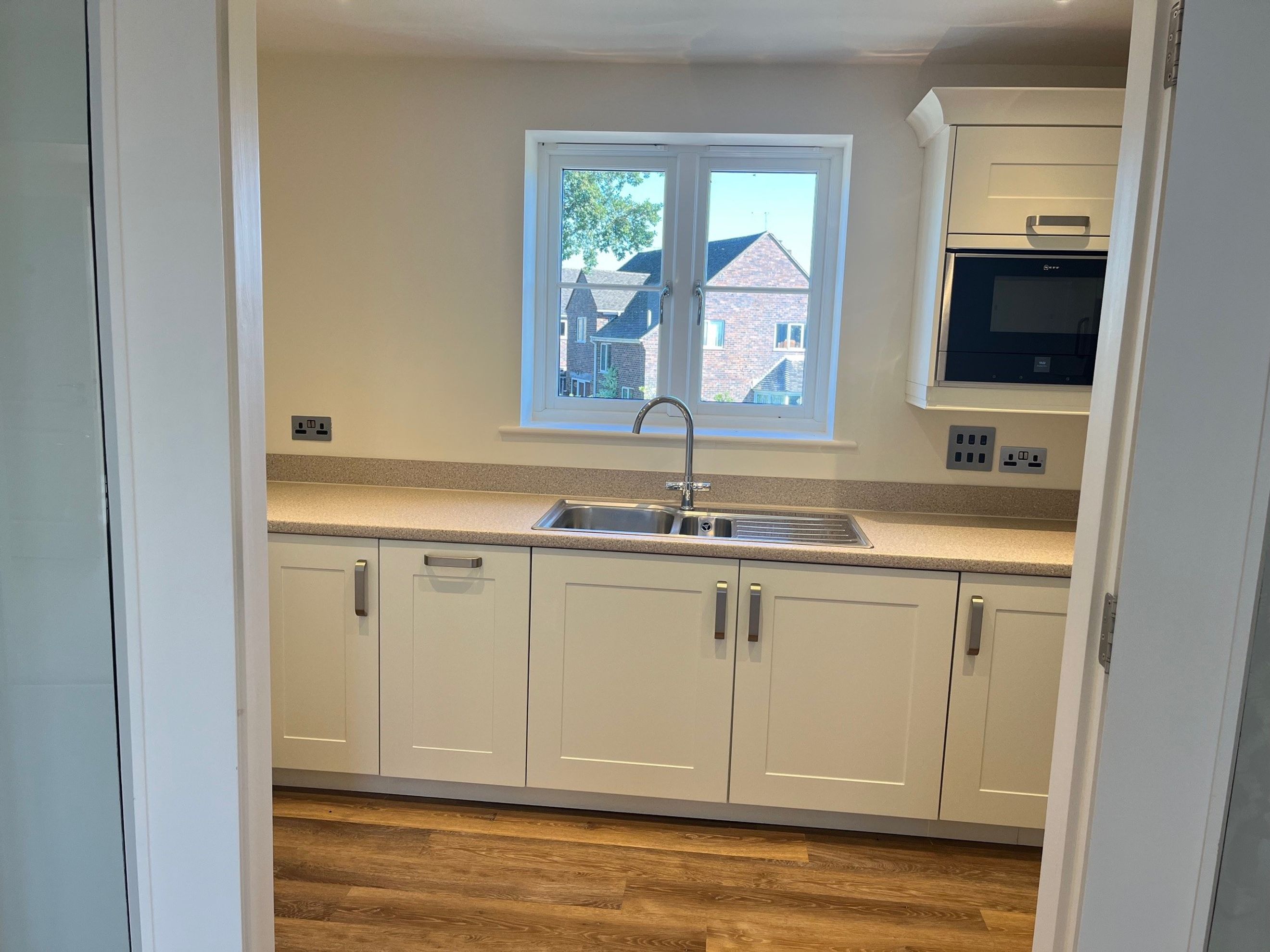 2 Cherry Walk is a charming one bedroom apartment on the first floor. This property has stairs leading up to the first floor from the front door. The apartment has a large double bedroom with separate bathroom, and ample storage space throughout. There’s also the spacious open plan living/dining area and a fully equipped kitchen accessed through double doors.