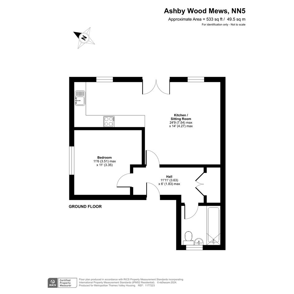 The property on the ground floor comprises of an entrance hall, a living room with an modern open plan kitchen, one large bedroom and a bathroom.