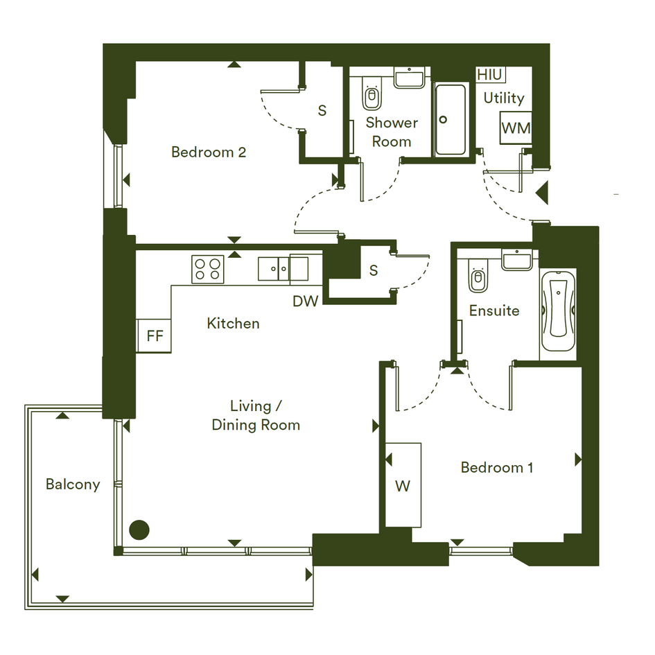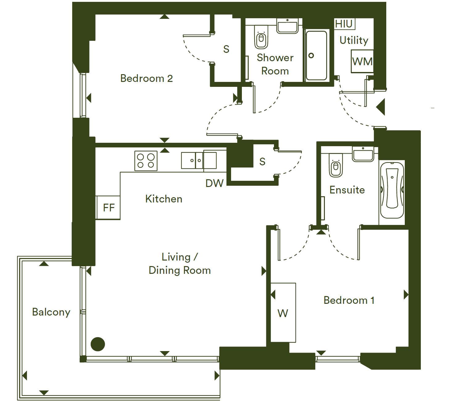 Jet House - Plot E2.2.02 is a 2 bedroom second floor apartment offering 70sq.m of internal floor area with outdoor space.
