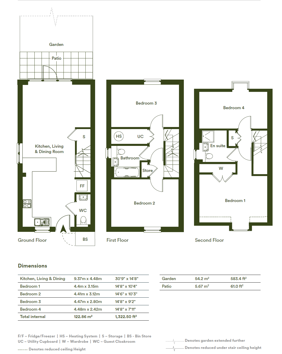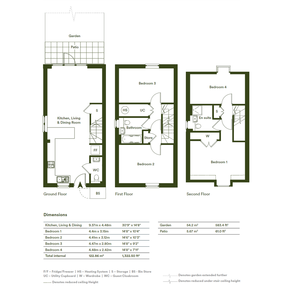 4 bedrooms, 2 bathroom over 3 floors providing 122 sq m of internal space.