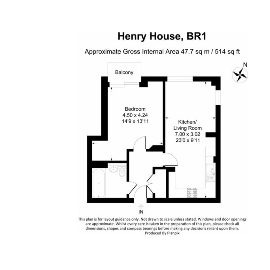 An 8th floor, one-bedroom apartment in London.