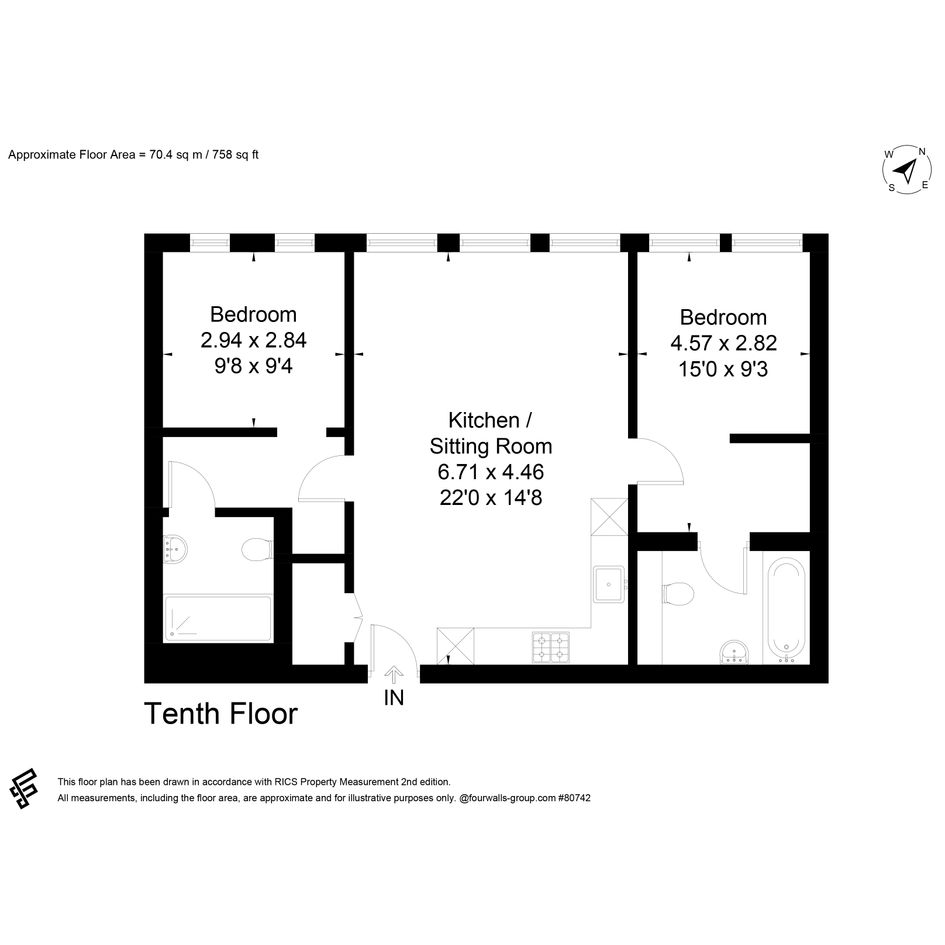Once you've walked through the door of your new home, you'll immediately be presented with the spacious open-plan kitchen/living area providing seamless manoeuvrability through the property with it's available bedrooms located through doors either side of the living area. Through the door on your right, you'll have the large spacious master bedroom benefitting from a small partition in the room that could be used for clothing rails and storage units to ensure that your belongings are kept organised and out of the way. The master bedroom also provides a contemporary en-suite bathroom featuring a while design with black accents on the drying rail, sink and mirror. Going back to the living area, through the door on your left is where the properties second double-bedroom is located offering ample space to store a large bed, additional storage units and a TV setup for example. The property also features from a large shower room that is located opposite the second bedroom finished with the same design as the en-suite. Just to the left of the front door there is also a large storage cupboard offering additional tuck-away space for your belongings.