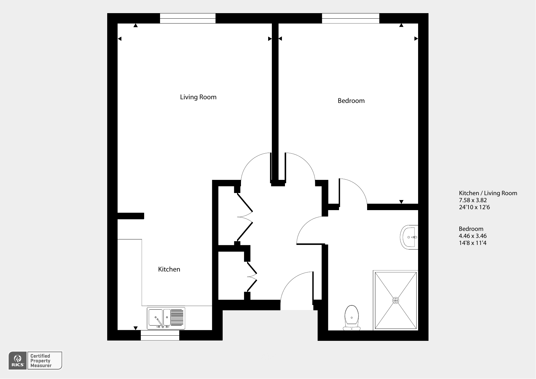 The bedroom is a double. The bathroom is a purpose-built wet room.