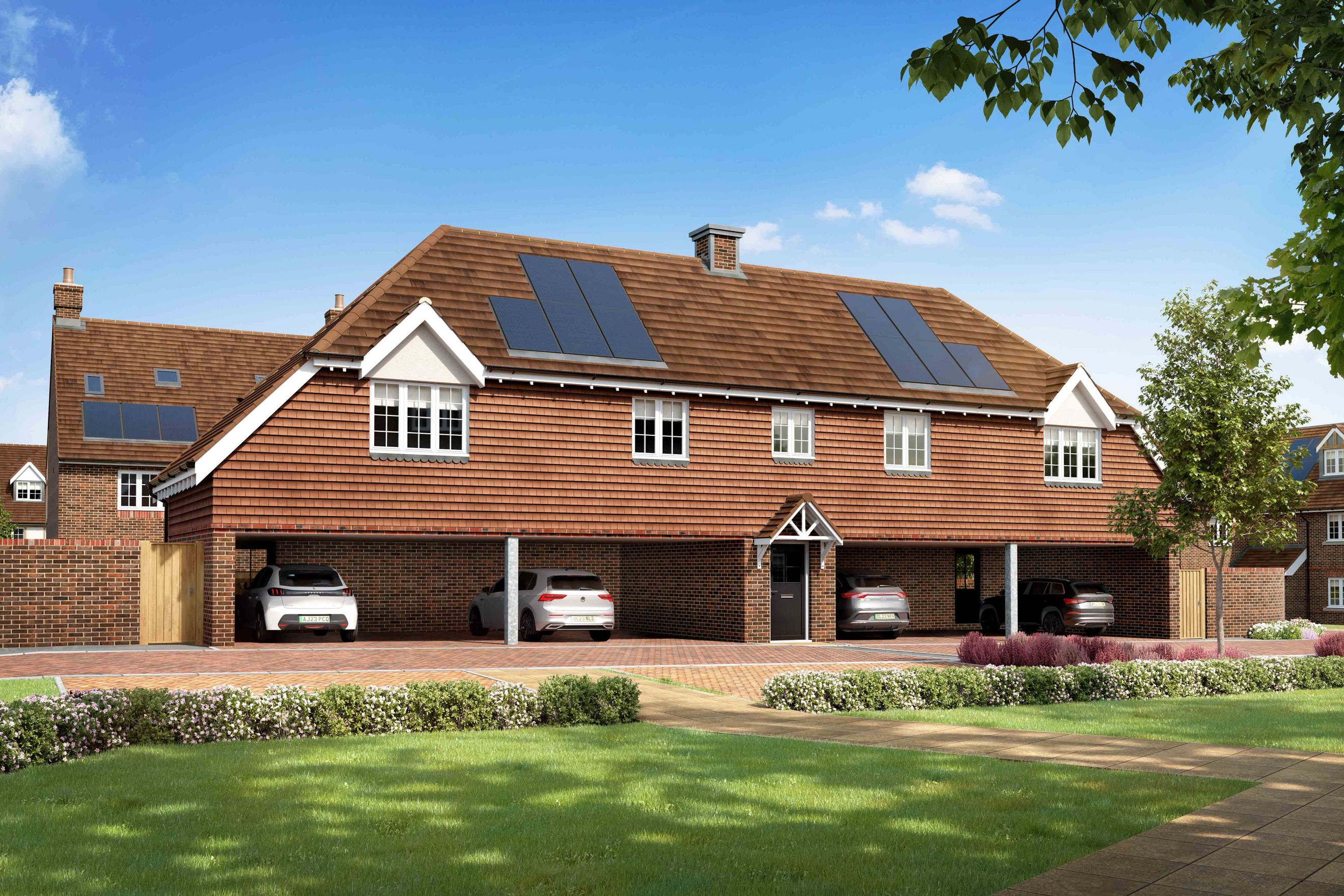 New coach house with private garden and carport parking.