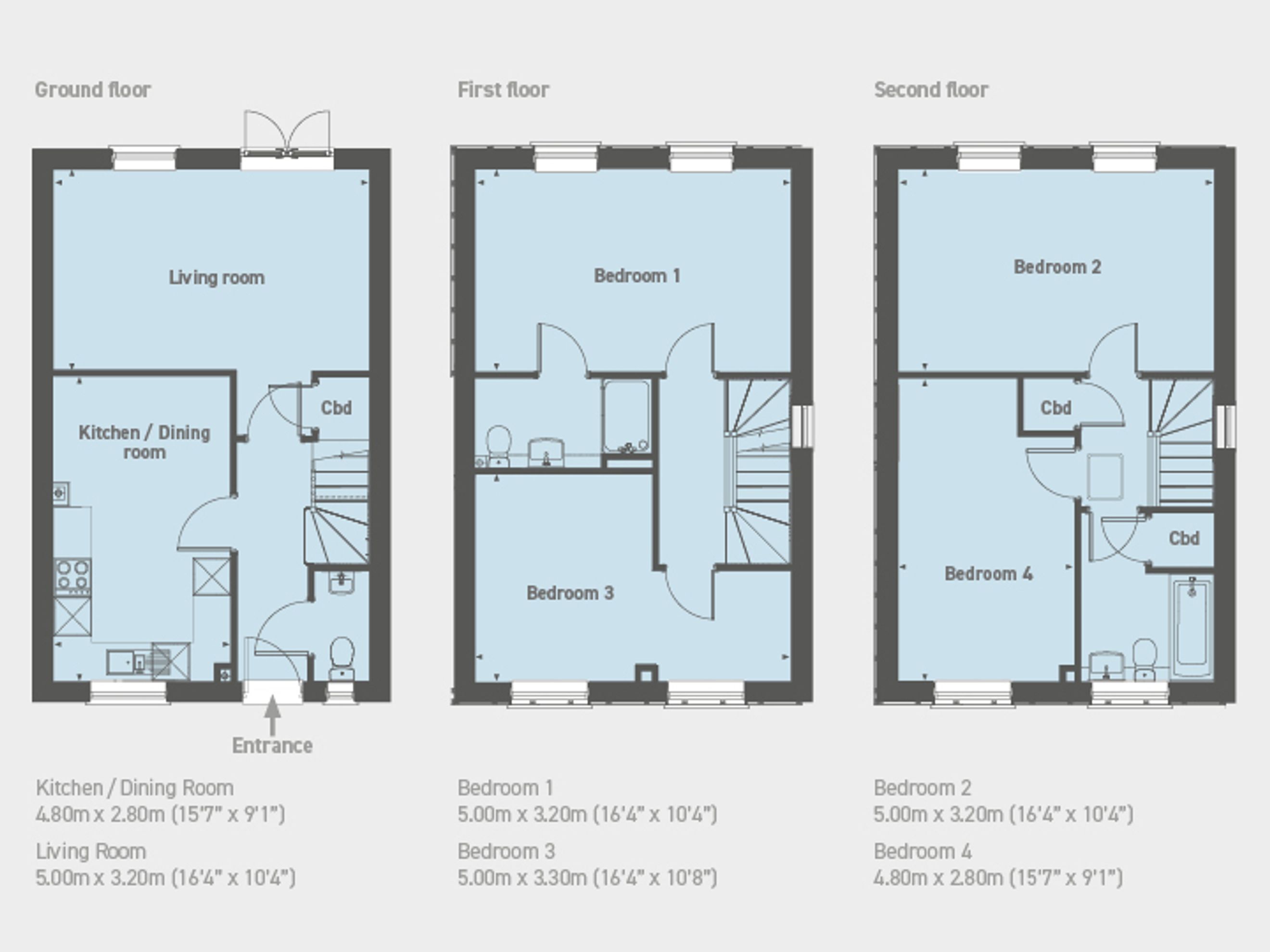 Each house type offers a spacious separate kitchen/dining room on the ground floor together with a useful cloakroom with WC and handbasin and a large living room with doors opening on to the rear garden. All homes whether two, three or four bedroom, benefits from allocated off-street parking.
