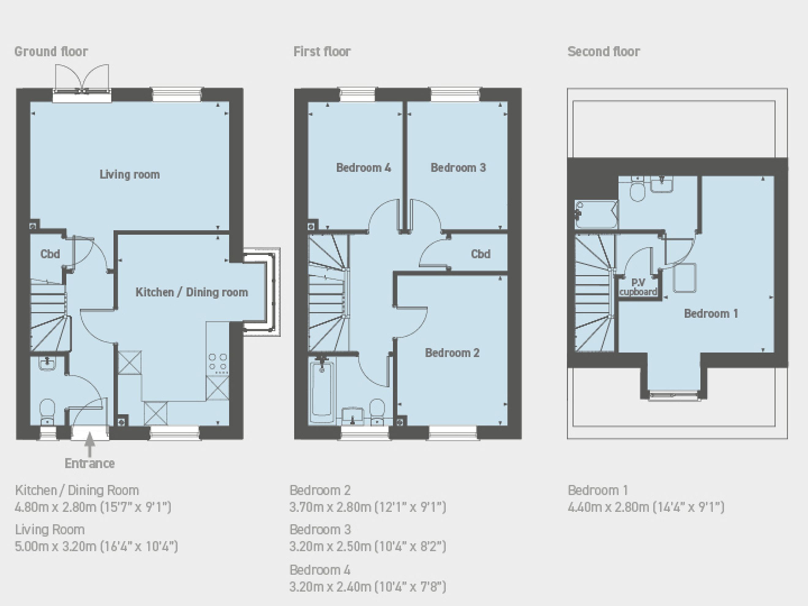 Each house type offers a spacious separate kitchen/dining room on the ground floor together with a useful cloakroom with WC and handbasin and a large living room with doors opening on to the rear garden. All homes whether two, three or four bedroom, benefits from allocated off-street parking.