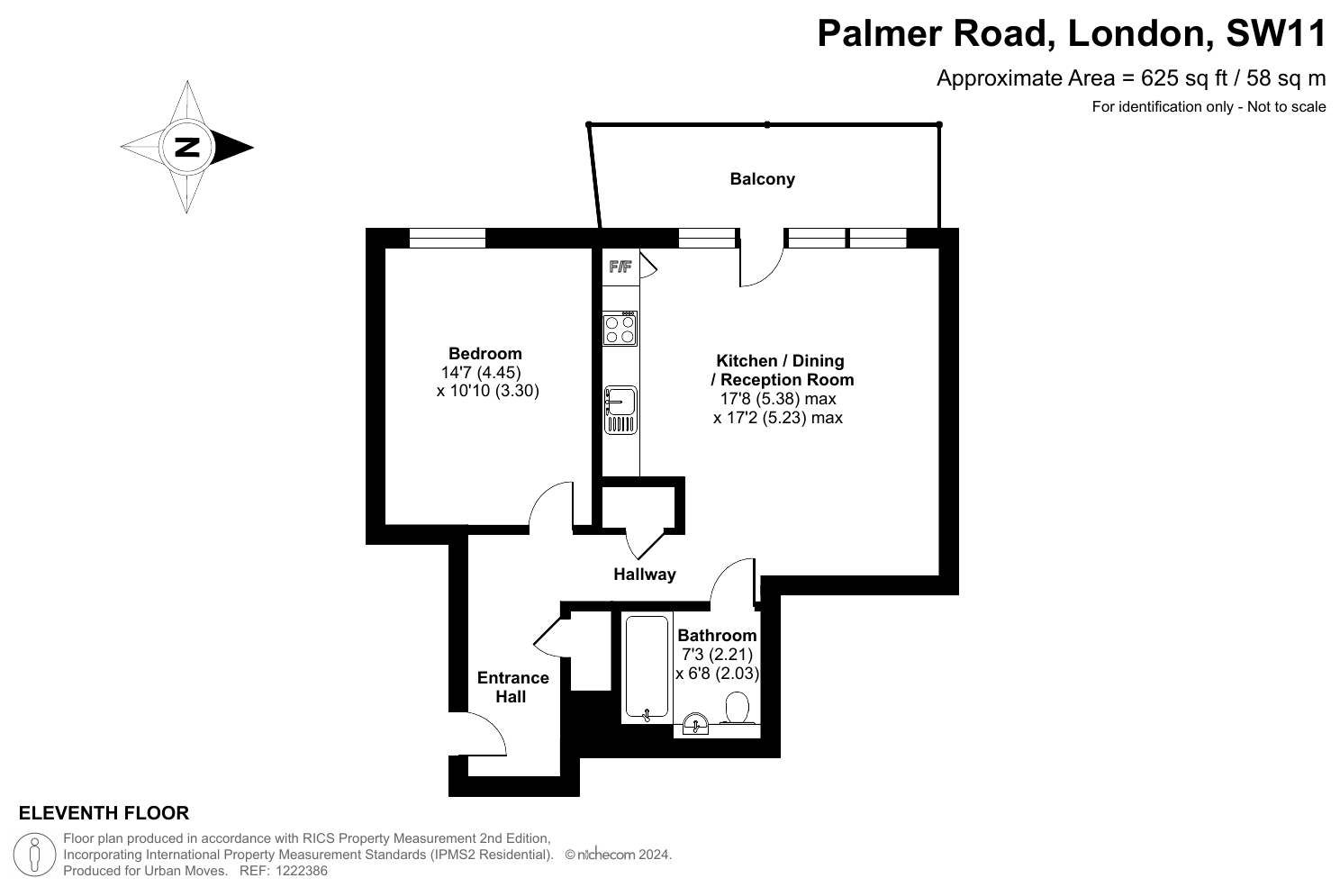 This generously-sized, one-bedroom apartment is on the top floor and has an open-plan kitchen/reception room with attractive, walnut-style flooring. A glazed door provides access to the west-facing balcony. The bedroom is spacious, the bathroom high-spec and there is a pair of storage/utility cupboards in the hallway. Well insulated walls and roof, high performance glazing and underfloor heating supplied from a communal hot water system all contribute towards a very good energy-efficiency rating. Elmbridge House is part of a recently-built development in the Nine Elms Regeneration Area. The lake, sports facilities and open spaces of Battersea Park are only a few minutes away. Battersea Park Station and Queenstown Road are close and the redeveloped Battersea Power Station site offers restaurants, bars and stores as well as a new Northern Line station. Food shopping is convenient with Waitrose and Sainsbury's supermarkets in the local area and nearby Chelsea Bridge also means areas north of the Thames are in easy reach.