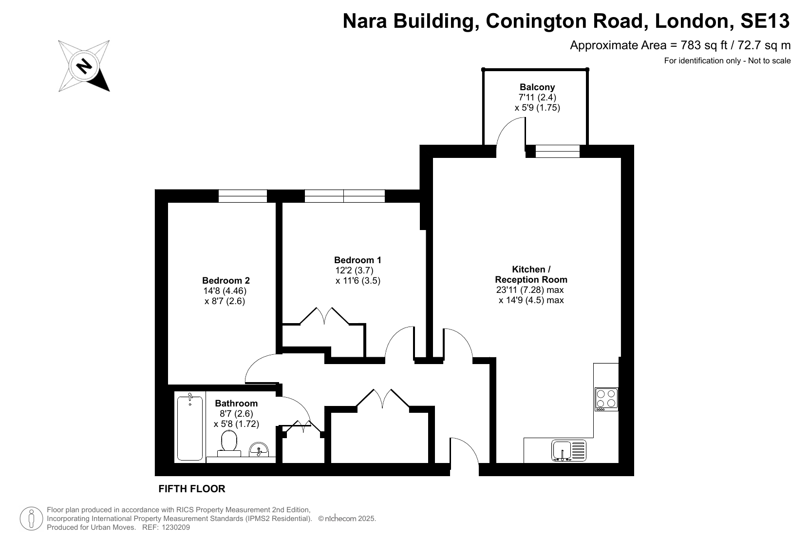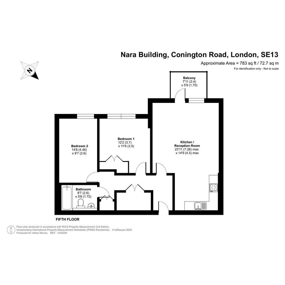 This beautifully-presented apartment is on the fifth floor and has a spacious reception room with open-plan kitchen area and a door that leads out onto a south-west-facing balcony. The two bedrooms are both comfortable doubles, there is a sleek, monochrome bathroom and useful built-in storage/utility cupboards have been provided in the entrance hallway. Well insulated walls, modern double glazing and a communal heating/hot water system make for a very good energy-efficiency rating. Nara Building is part of the Silkworks development and has a pleasant communal courtyard. Elverson Road DLR is the nearest station with Lewisham, for services into London Bridge/Waterloo East/Charing Cross/Cannon Street/Victoria, also only a short walk away.