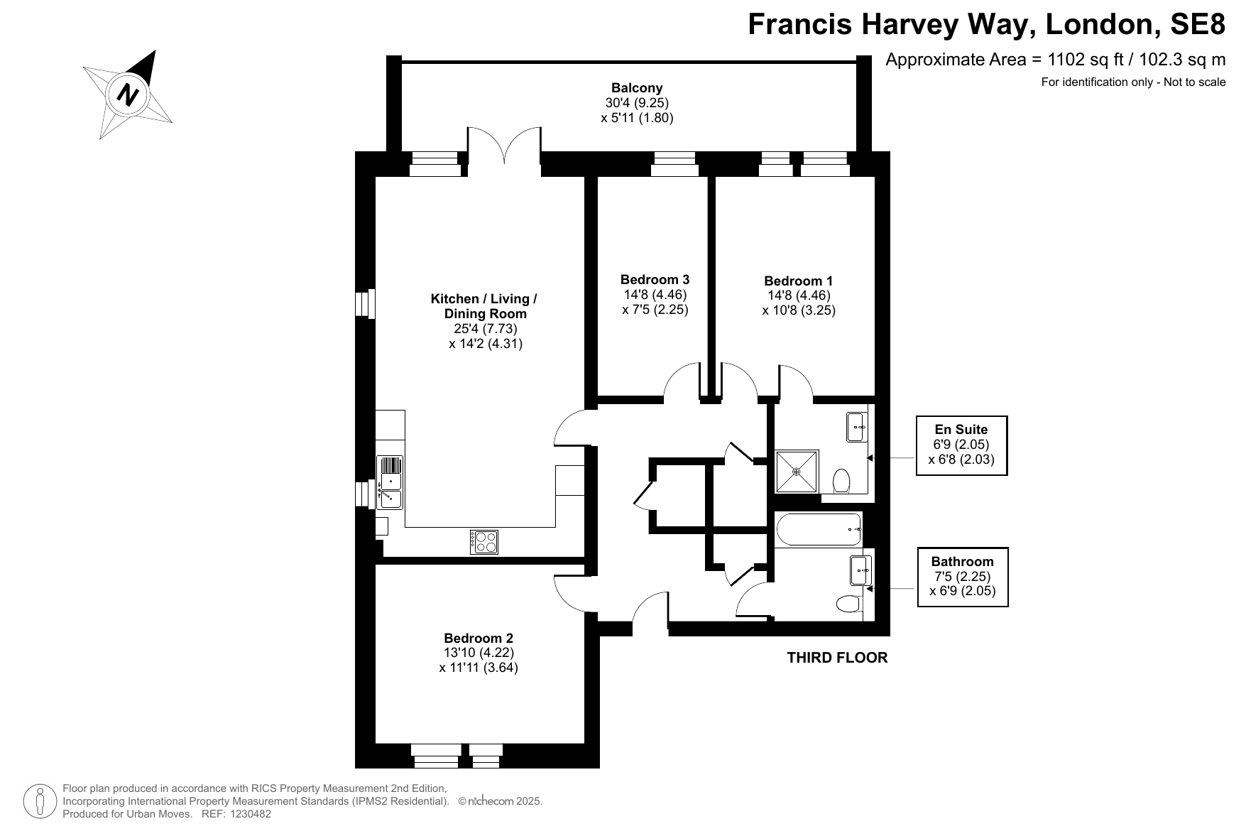 A rare chance to buy a spacious, three-bedroom, shared-ownership apartment. The smartly-presented property is part of a small block and is the only apartment on the top (third) floor. Access is via stairs and features include a twenty-five-foot, dual-aspect reception room with attractive flooring and a combination of gloss-white and wood-grain units in the open-plan kitchen area. A glazed door leads out onto a rear-facing balcony which runs almost the full width of the apartment. There is a main bedroom with en-suite shower room plus a generously-sized second bedroom, a smaller third double bedroom and a stylish bathroom. Three storage/utility cupboards have been provided in the entrance hallway and the well insulated walls and roof, high performance glazing and modern gas central heating system make for a very good energy-efficiency rating. St Johns is the nearest station and offers a frequent service into London Bridge/Cannon Street. New Cross and Deptford Bridge are also within easy reach for London Overground and DLR respectively. The shops, bars and restaurants of Deptford High Street are only a short walk away and Deptford Railway Station provides additional Thameslink services via Farringdon and St Pancras.