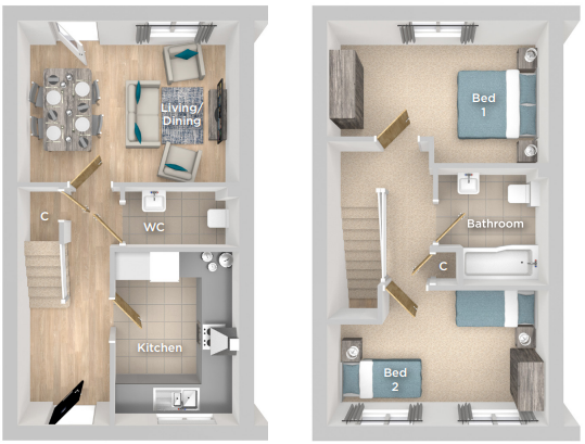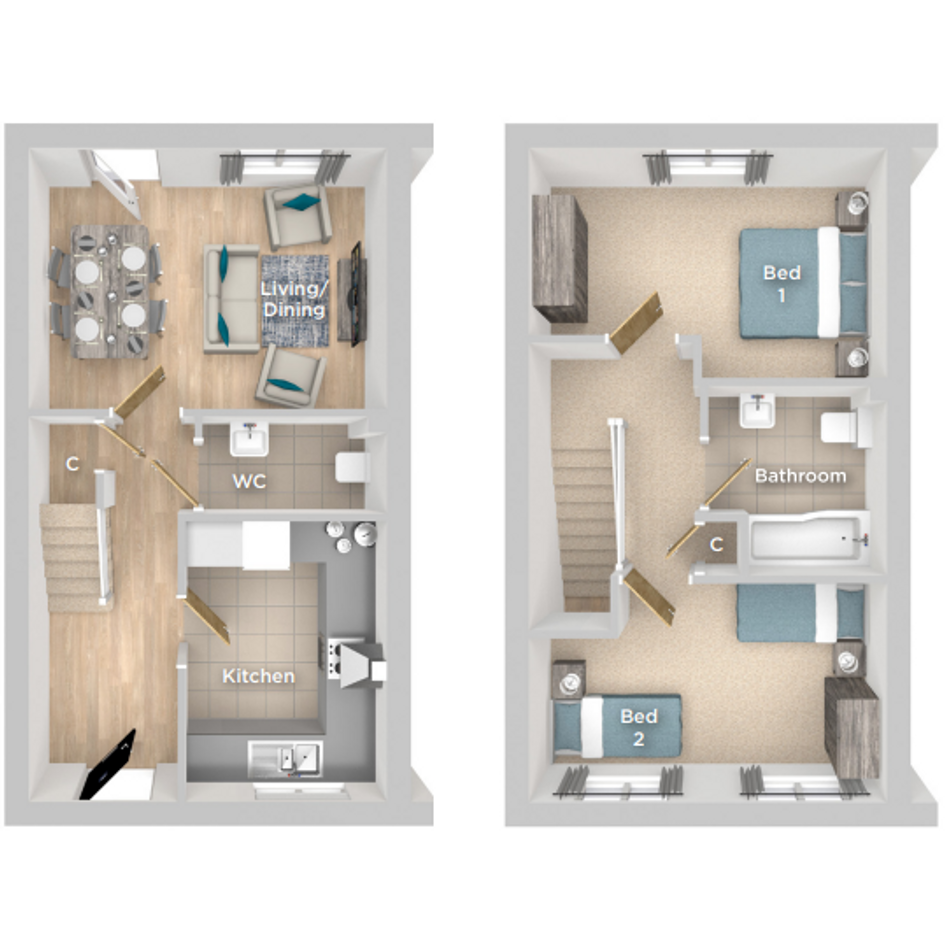 The Maple is a two bedroom, semi-detached home available with Shared Ownership.