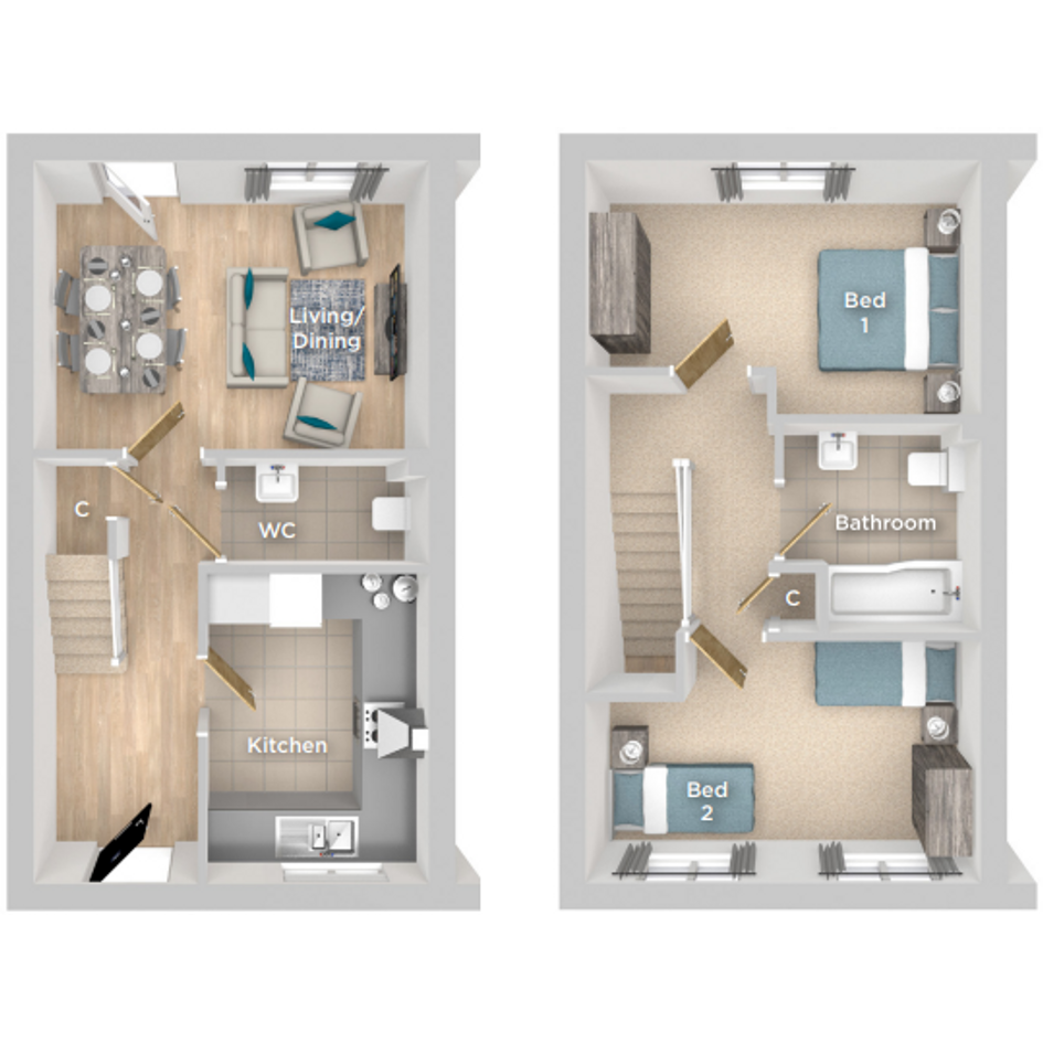 The Maple is a two bedroom, end-terrace home available with Shared Ownership.