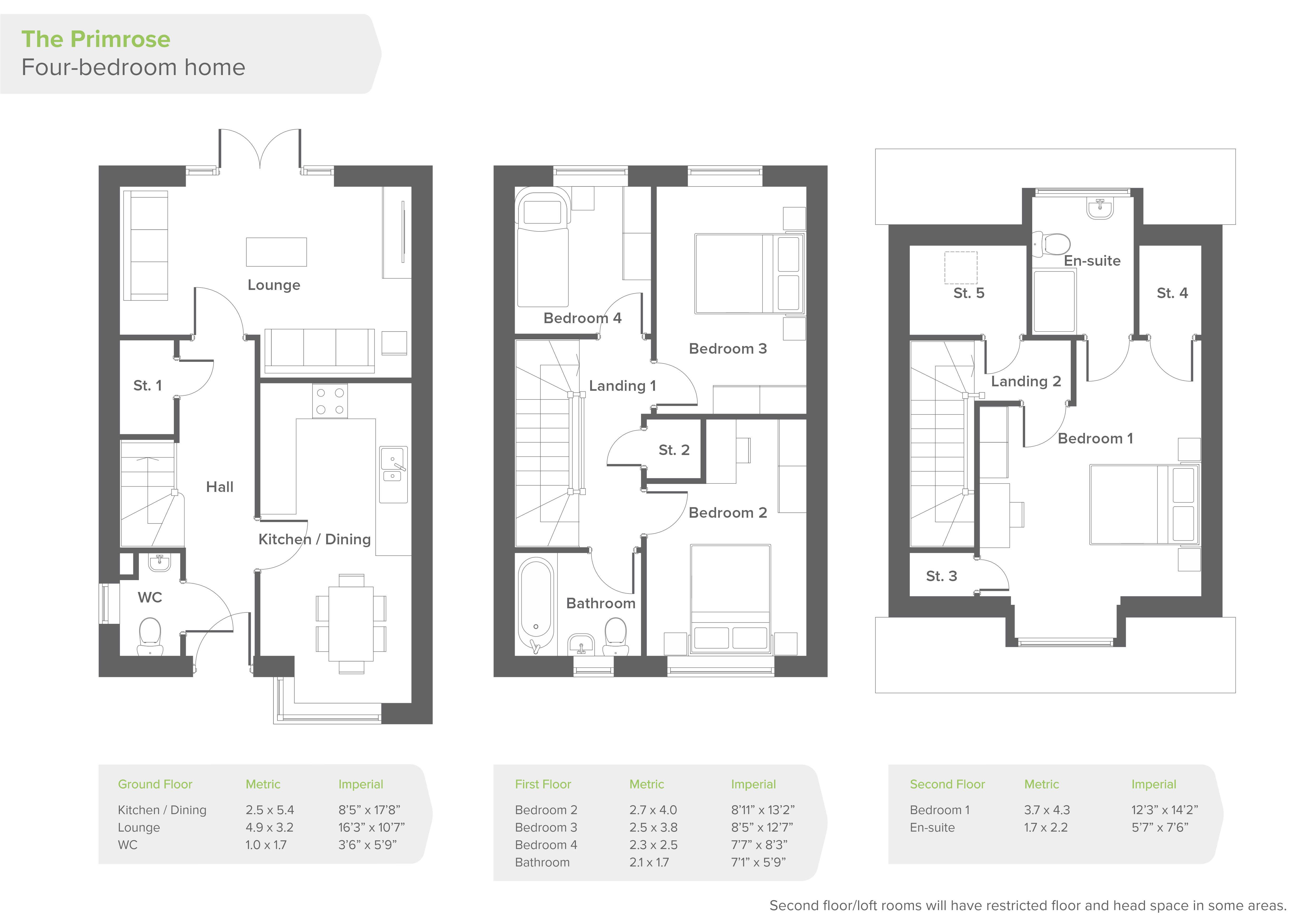 The first floor of The Primrose is made up of three bedrooms, two of which are good-sized double bedrooms, and a contemporary three-piece family bathroom containing an over-bath shower plus designer taps and tiling.