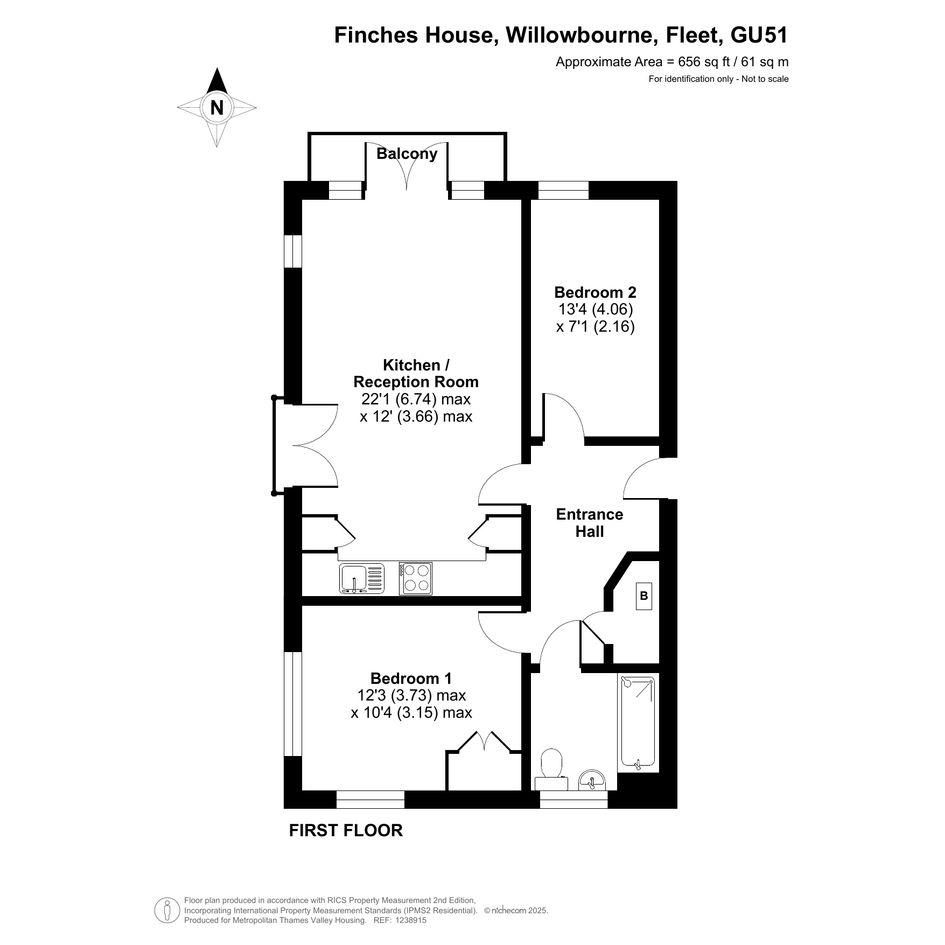 The property on the first floor comprises an entrance hall, a spacious living room with a modern open-plan kitchen, two bedrooms and a bathroom.