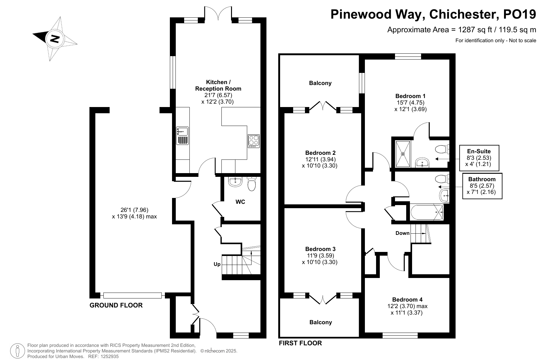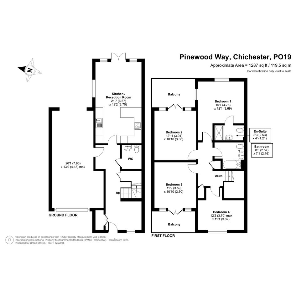 A rare chance to buy a four-bedroom, shared-ownership family home. This recently-constructed, end-of-terrace property offers almost thirteen hundred square feet of accommodation plus a covered, two-car driveway. A spacious entrance hallway leads to a ground-floor WC and to an attractive kitchen/reception room. Patio doors open onto the east-facing rear garden. On the first floor of the house is a principal bedroom with en-suite shower room. There are two further, generously-sized, bedrooms, both with balconies, plus a slightly smaller fourth double bedroom and a simple yet stylish family bathroom. The layout is versatile and the second bedroom could also serve as a reception room with the ground-floor room as a large kitchen/dining room. Well insulated walls, roof and floor, high performance glazing and a communal heating/hot water system have resulted in a very good energy-efficiency rating. Pinewood Way is part of the extensive Graylingwell Park development on the semi-rural outskirts of Chichester. Nearby Havenstoke Park offers beautiful, green space to enjoy as well as the popular Pavilion Cafe. The shops and other amenities of the city centre can also be easily reached by bus or bike. Very long lease (freehold transferred if 100% owned).