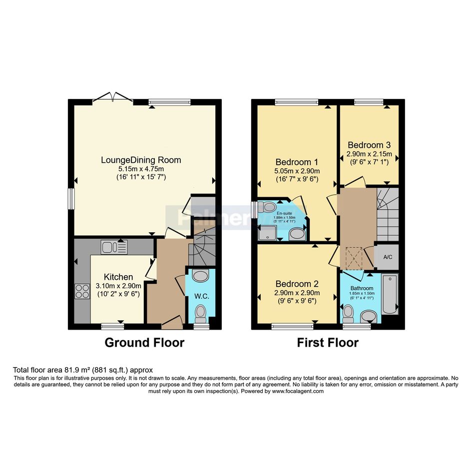 At first floor level there is a large master bedroom with en-suite shower room, 2 further good sized double bedrooms and bathroom.