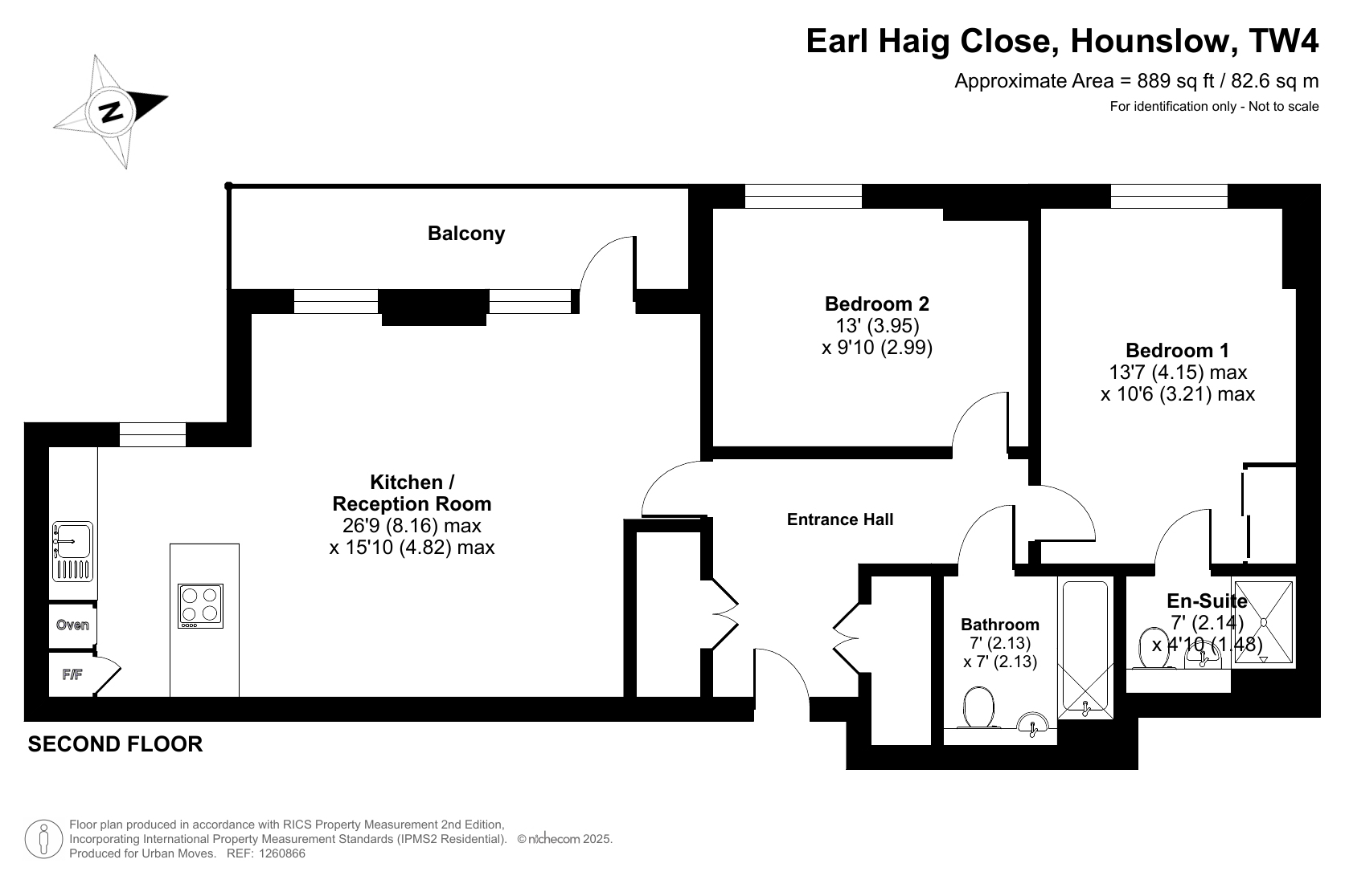 A smartly-presented flat on the second floor of this recently-built development. The spacious property has a twenty-six-foot reception room with open-plan kitchen area featuring integrated appliances and an island unit with breakfast bar. A glazed door leads from the dining area out onto the balcony. There is a main bedroom with built-in wardrobe and en-suite shower room plus a second, good-sized, double bedroom and a stylish bathroom. A pair of large storage/utility cupboards have been provided in the entrance hall and attractive wood panelling fitted in the three principle rooms. Well insulated walls, high performance glazing and a communal heating/hot water system make for a very good energy-efficiency rating. New Bell House has a communal cycle store and is also just minutes from Hounslow West Station, for Piccadilly Line services. Ofsted list eight schools that are rated either 'Good' or 'Outstanding' within a mile radius.