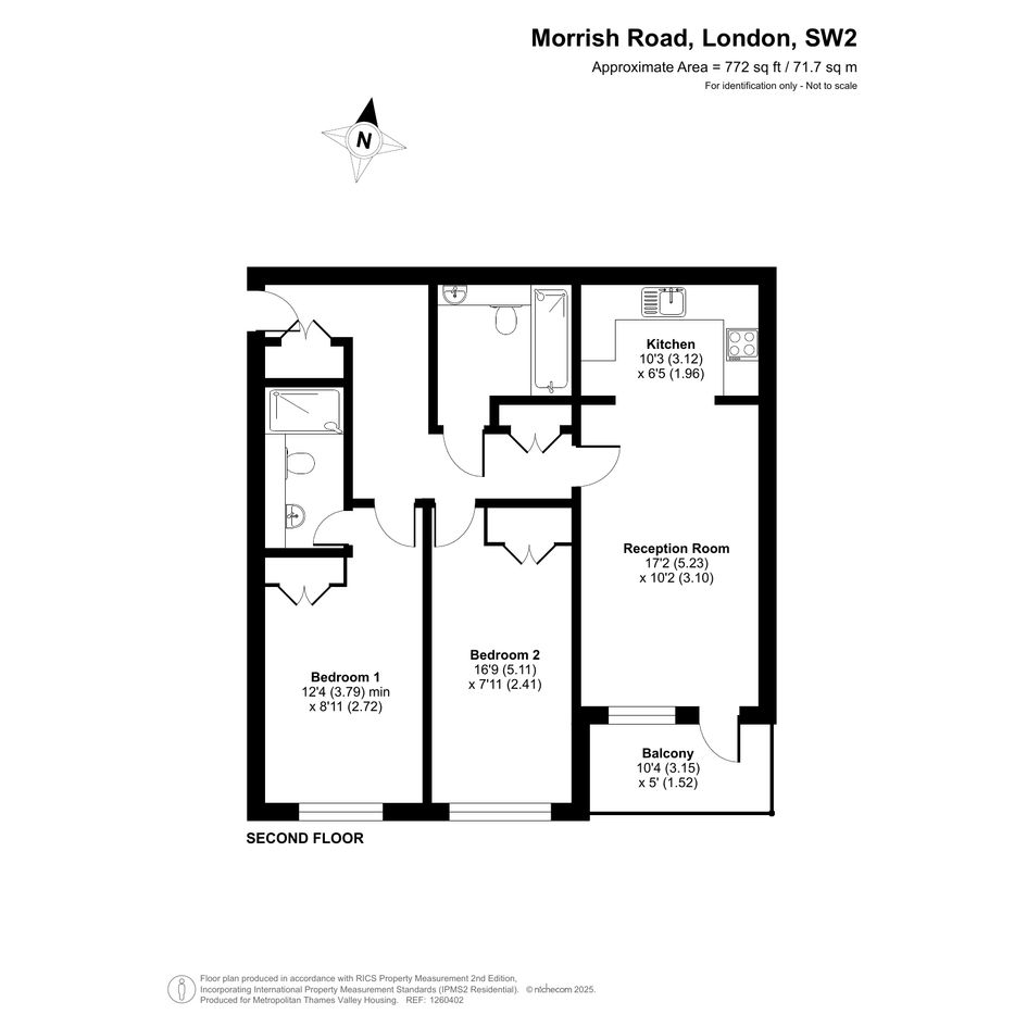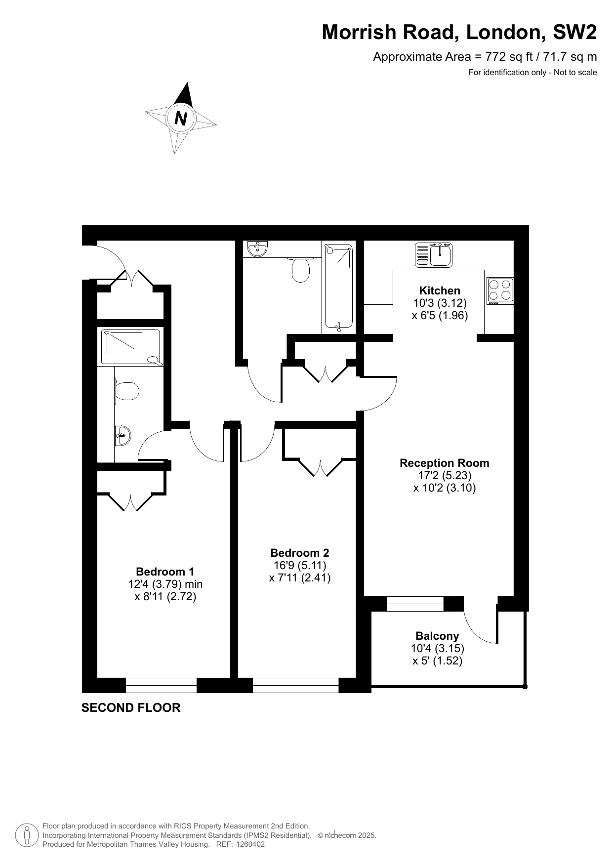 The second-floor property comprises an entrance hall, a spacious living room, two bedrooms (one en-suite) and a bathroom.