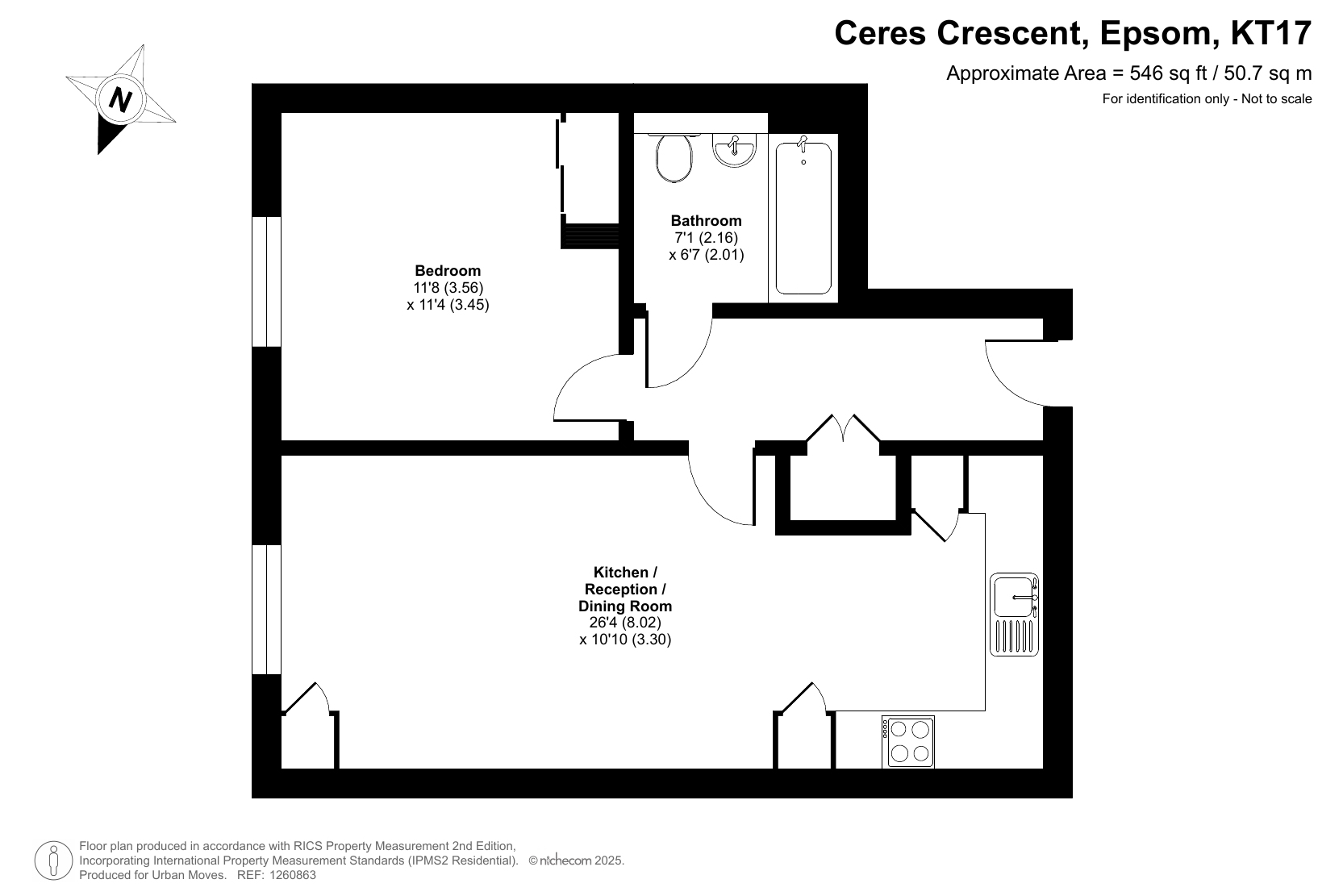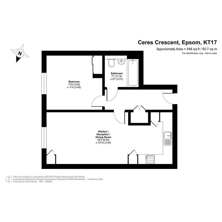 No chain. This beautifully-presented flat is on the top floor of a modern development and has a twenty-six-foot reception room with open-plan kitchen area featuring attractive units and integrated appliances. The bedroom includes a fitted, mirror-fronted wardrobe, there is a storage/utility cupboard in the entrance hallway and a stylish bathroom. Well insulated walls and roof, high performance glazing and gas central heating all contribute towards a very good energy-efficiency rating. The flat comes with use of an allocated parking space and the nearby A24 leads into central London as well as providing access to the M25 and beyond. Alternatively, Ewell East Station is just a short walk away and Ewell West is also within easy reach.