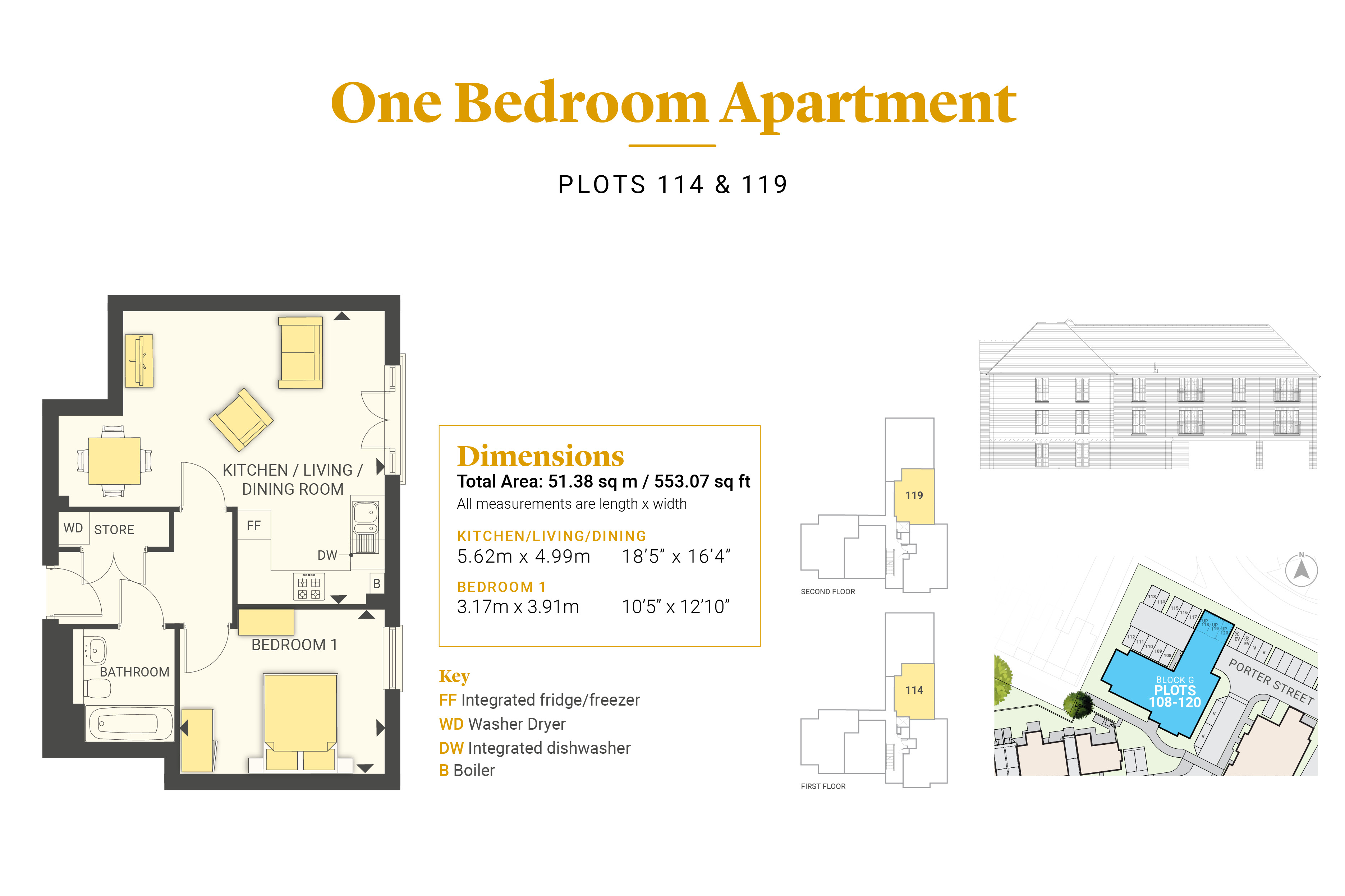 Plot 114 is a new 1 bedroom apartment located on the first floor of block G at Rivermead Gardens in Alton available to buy with a deposit of just £2,531* with Shared Ownership.