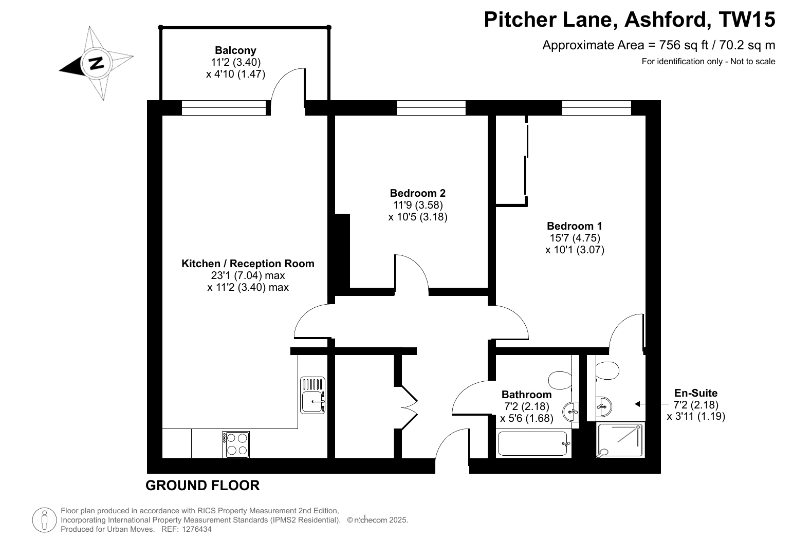 This well-proportioned apartment is on the ground floor and has a spacious entrance hall with large storage/utility cupboard. The twenty-three-foot reception room features a stylish, open-plan kitchen with handle-less units and integrated appliances. At the other end of the room, a glazed door leads out onto an east/south-east-facing balcony. The height difference across the site means that the balcony is raised above the street level. There is a main bedroom with fitted wardrobe and en-suite shower room plus a second, good-sized, double bedroom and an attractive, high-spec bathroom. Demanding insulation standards, high performance glazing and a communal heating and hot water system have resulted in a very good energy-efficiency rating. Palmer Court has a well-maintained communal garden and is only a short walk from Ashford Railway Station, for services between Weybridge/Windsor & Eton Riverside and London Waterloo. The property comes with a parking space plus use of the communal cycle store.