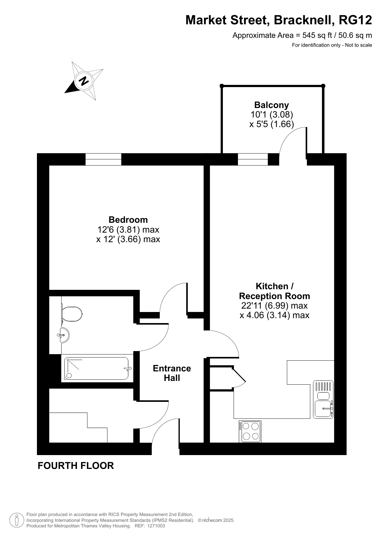 The property is on the fourth floor and comprises a spacious living room, an open-plan fitted kitchen, and a bedroom; there's also a private balcony. This could be ideal for a small family or a couple.
