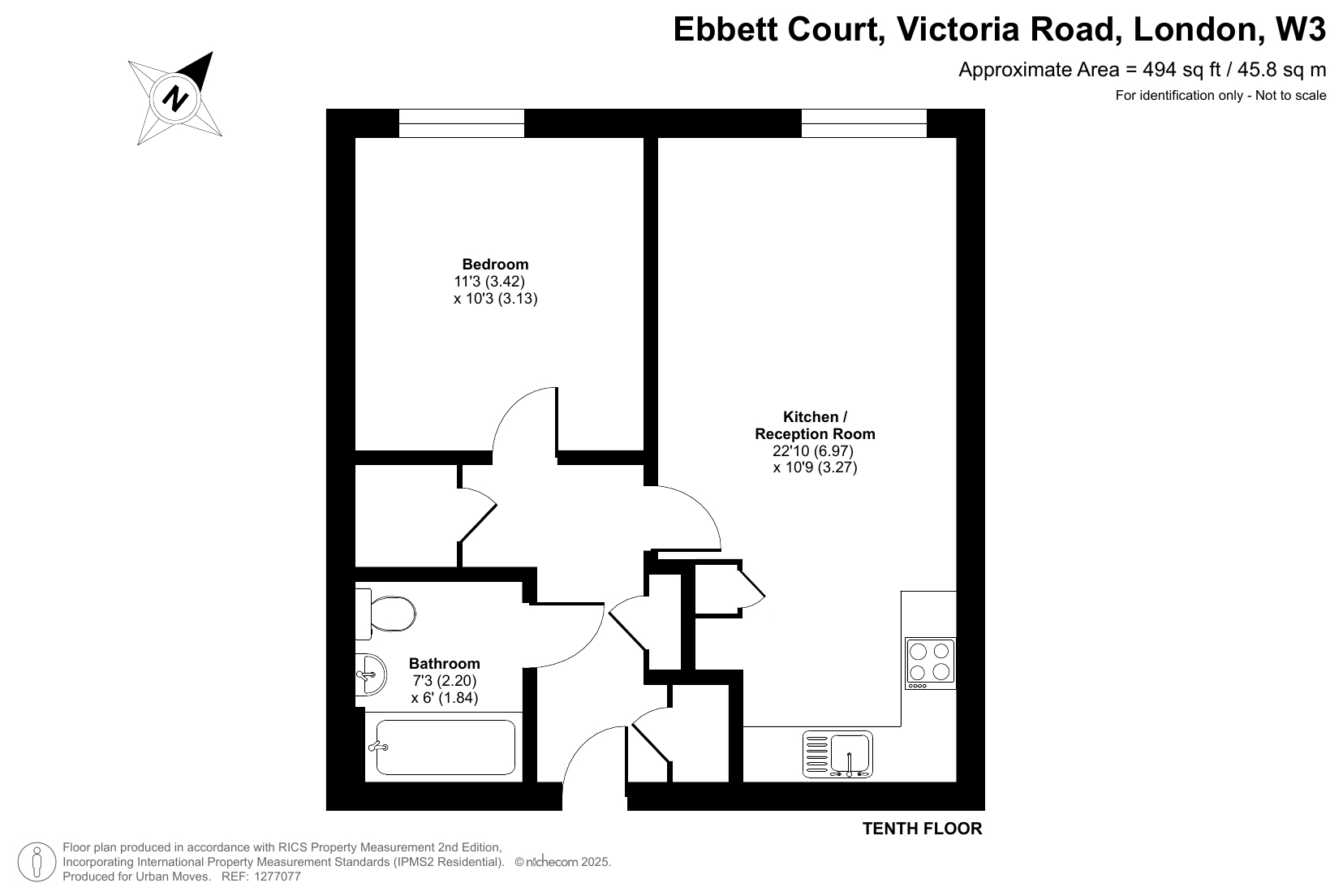 This one-bedroom apartment is on the tenth floor of a modern development. The property has an approximately twenty-three-foot, open-plan kitchen/reception room and the elevation provides a far-reaching view. There is a spacious bedroom, a bathroom with mosaic-style tiles and three storage/utility cupboards in the entrance hallway. Well insulated walls and modern double glazing help keep energy costs down. There is a Tesco Express conveniently located on the ground floor and a selection of others shops/cafes in the immediate vicinity. North Acton Station (Central line) is opposite the block for fast, frequent services into central London. White City (for Westfield shopping centre) is only two stops and Bond Street can be reached in just 18 minutes (TfL). Acton Main Line Station, for the Elizabeth Line, is also just a twelve minute walk away (Google Maps).