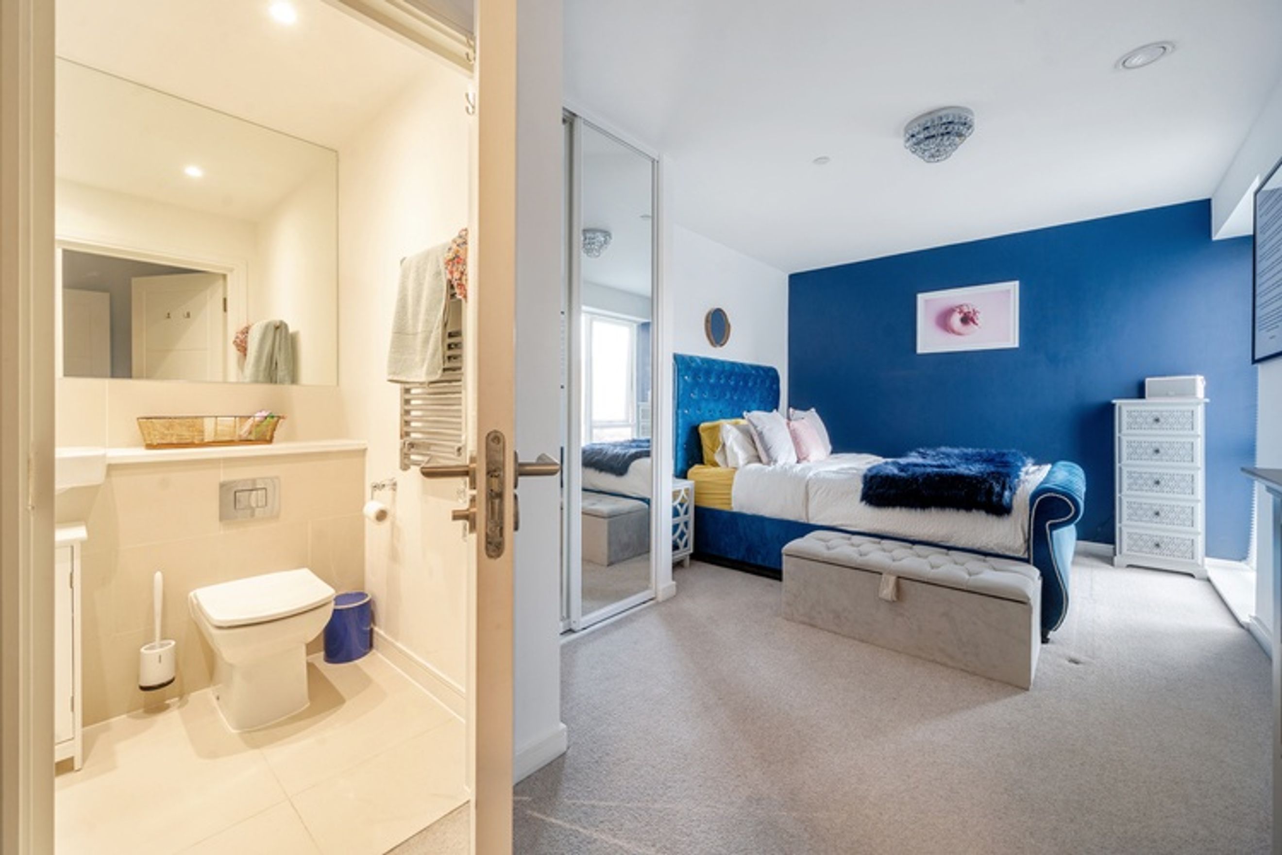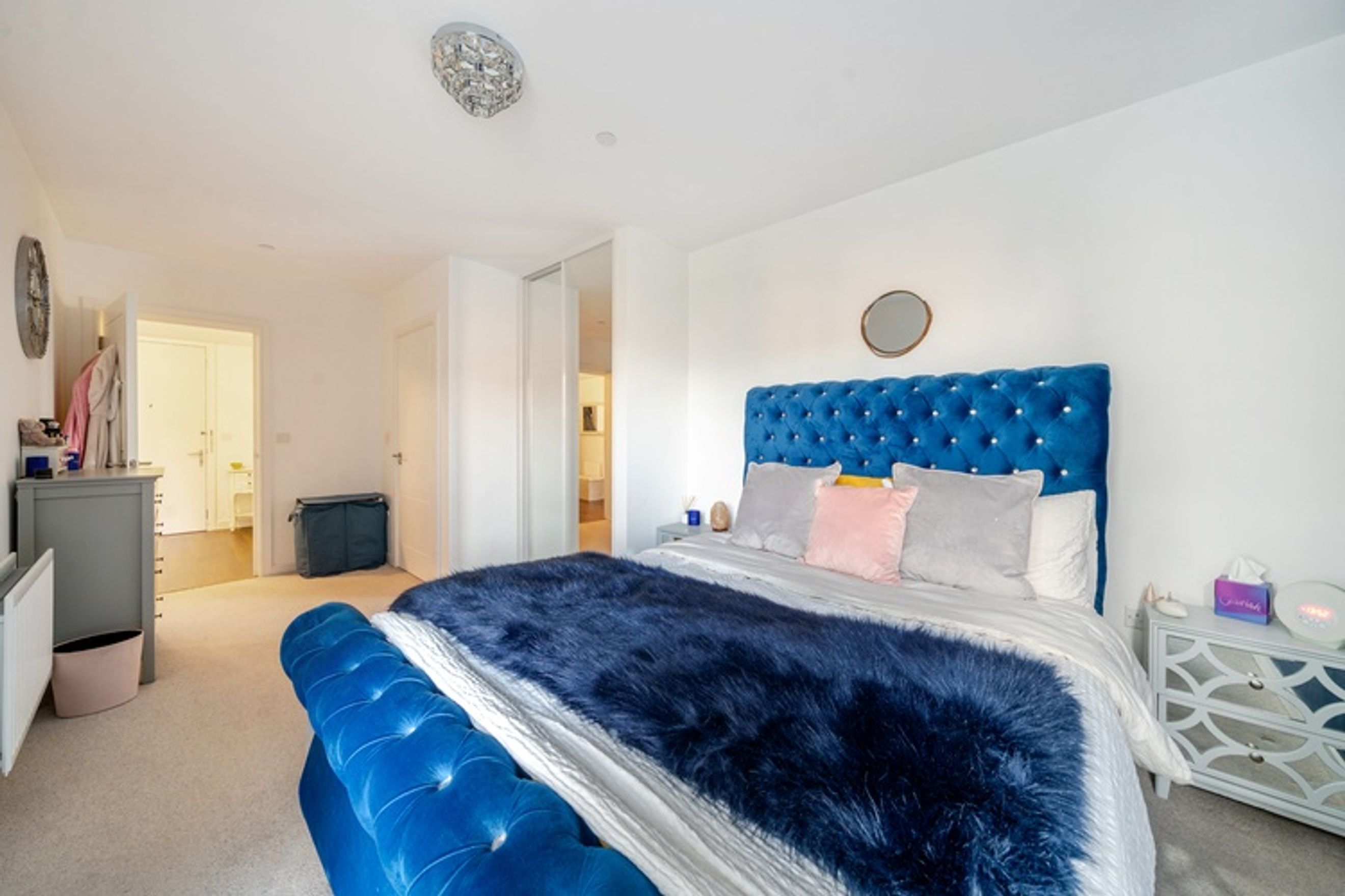 The property is located on the second floor and comprises a wide living room with a private balcony, an open-plan fitted kitchen, a master bedroom with en-suite, a second double bedroom and a large family bathroom. Triple glazed throughout.