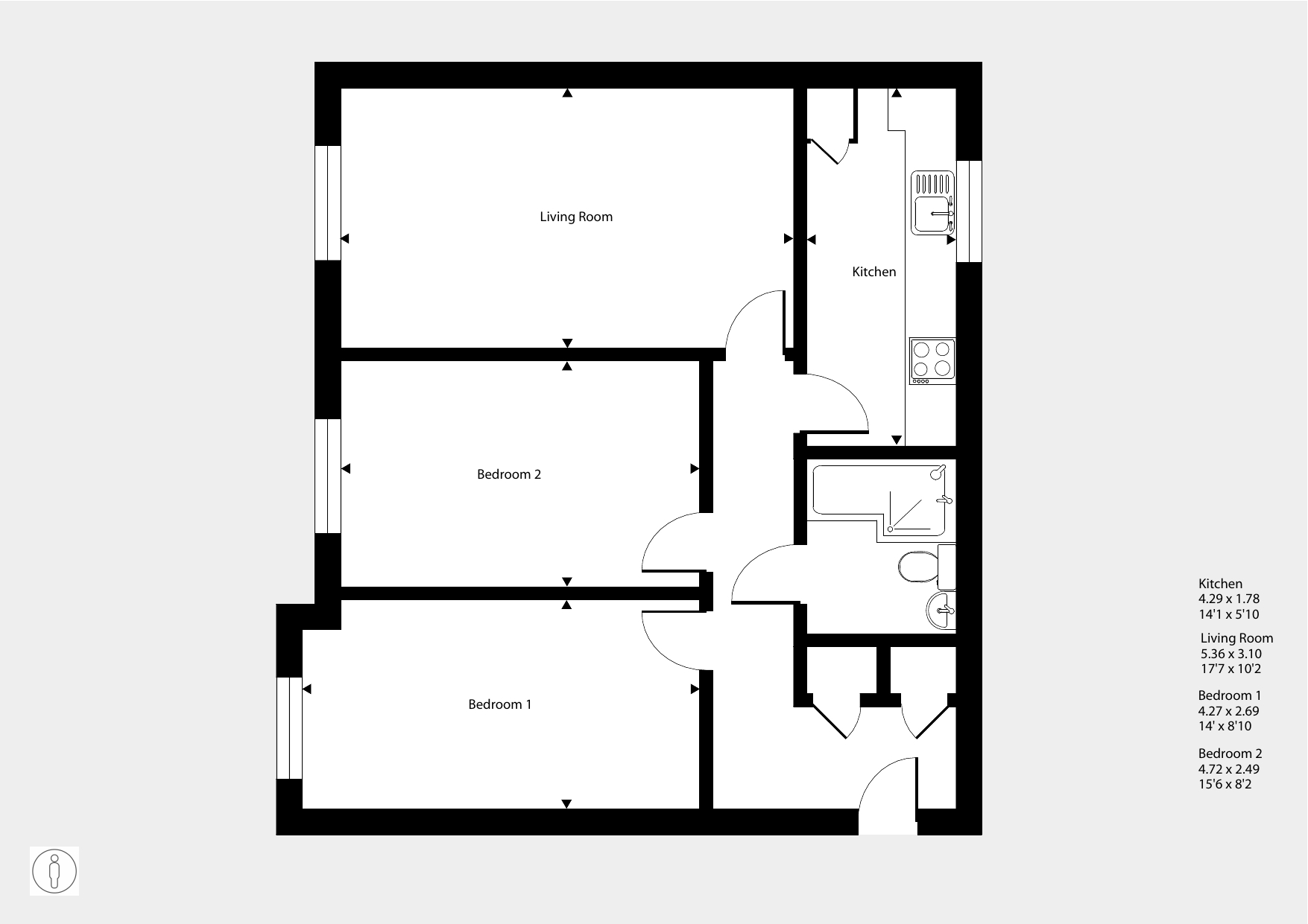 Featuring a spacious living room. The kitchen is fitted with an integrated oven, hob and hood. There are two comfortable bedrooms. The bathroom has a modern, white suite.