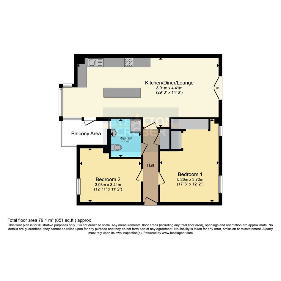A communal entrance hall leads to the property. Accommodation comprises an entrance hall with intercom entry system leading to a spacious open plan living area with kitchen/dining/lounge. The lounge area has plenty of space for sofas and easy chairs and has access to the communal gardens at the rear. The dining kitchen has room for a dining room table, plenty of storage space and food preparation area including a centre island. A door leads to an outside balcony, idea for alfresco eating. There are two double rooms and a shower room.