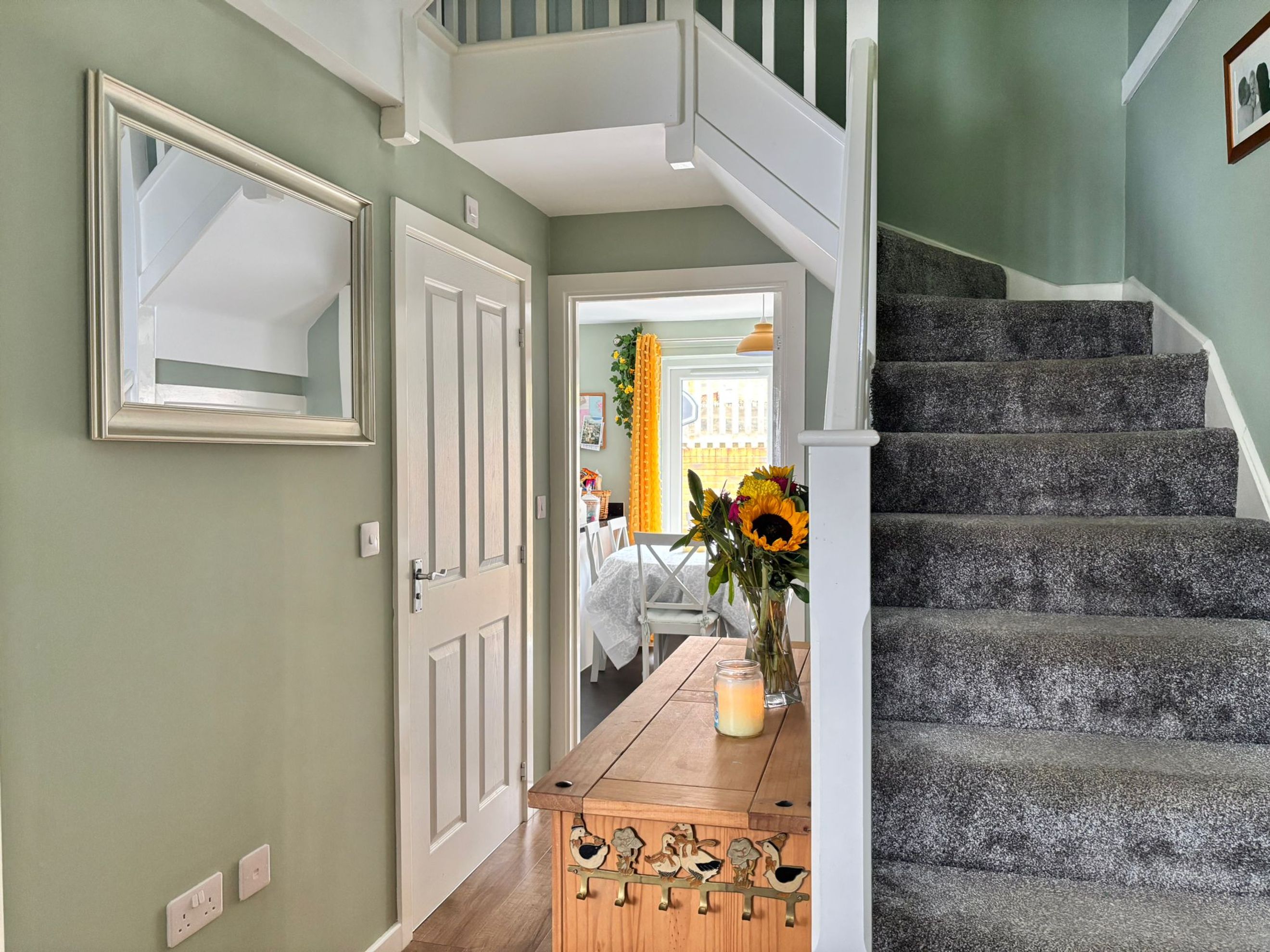 The thoughtfully designed ground floor includes an entrance hallway into a well-presented living room. Completing the ground floor is a separate, fully fitted kitchen/dining area with a rear patio door leading to the private rear garden, a downstairs WC and a convenient utility room.