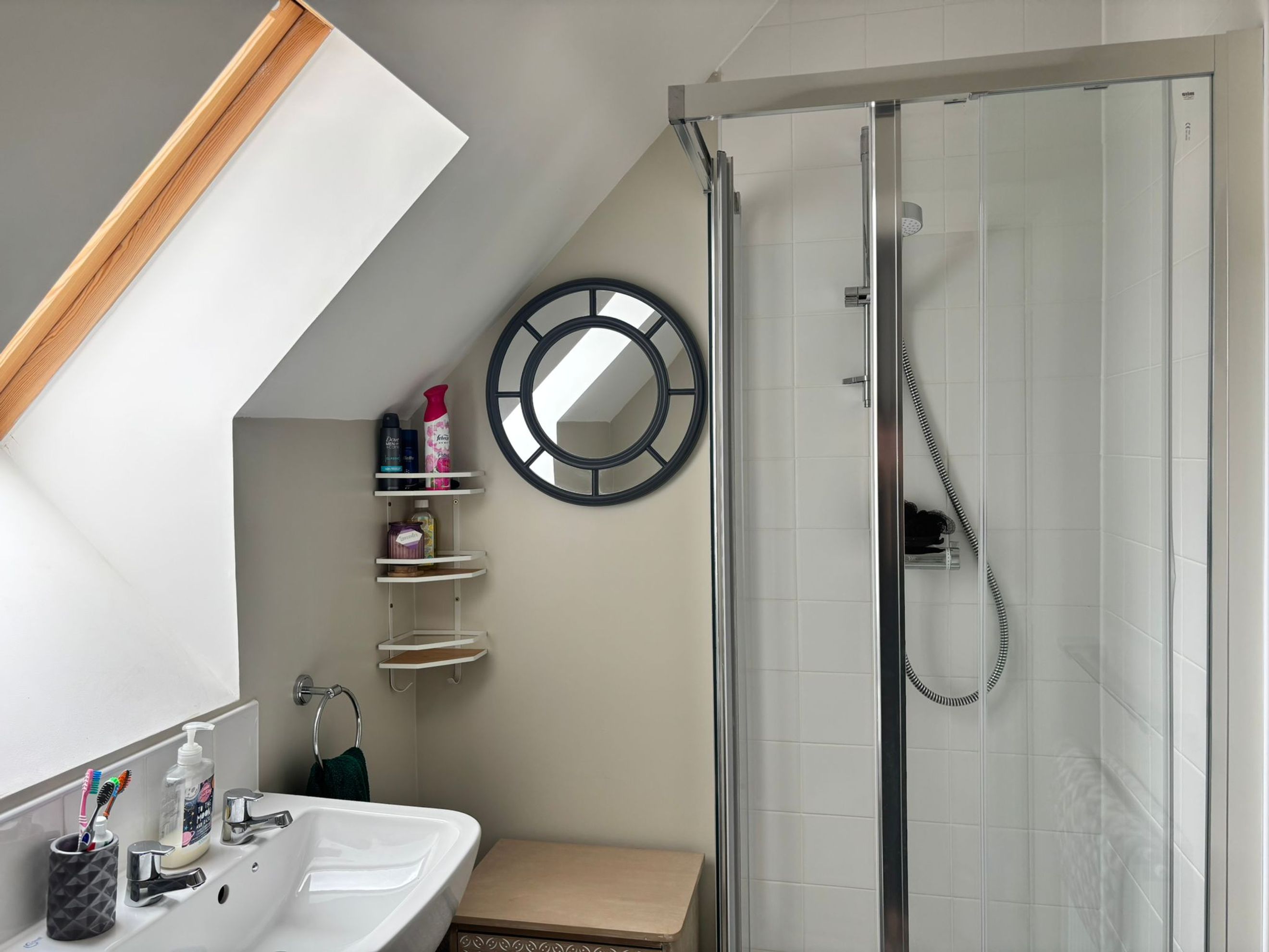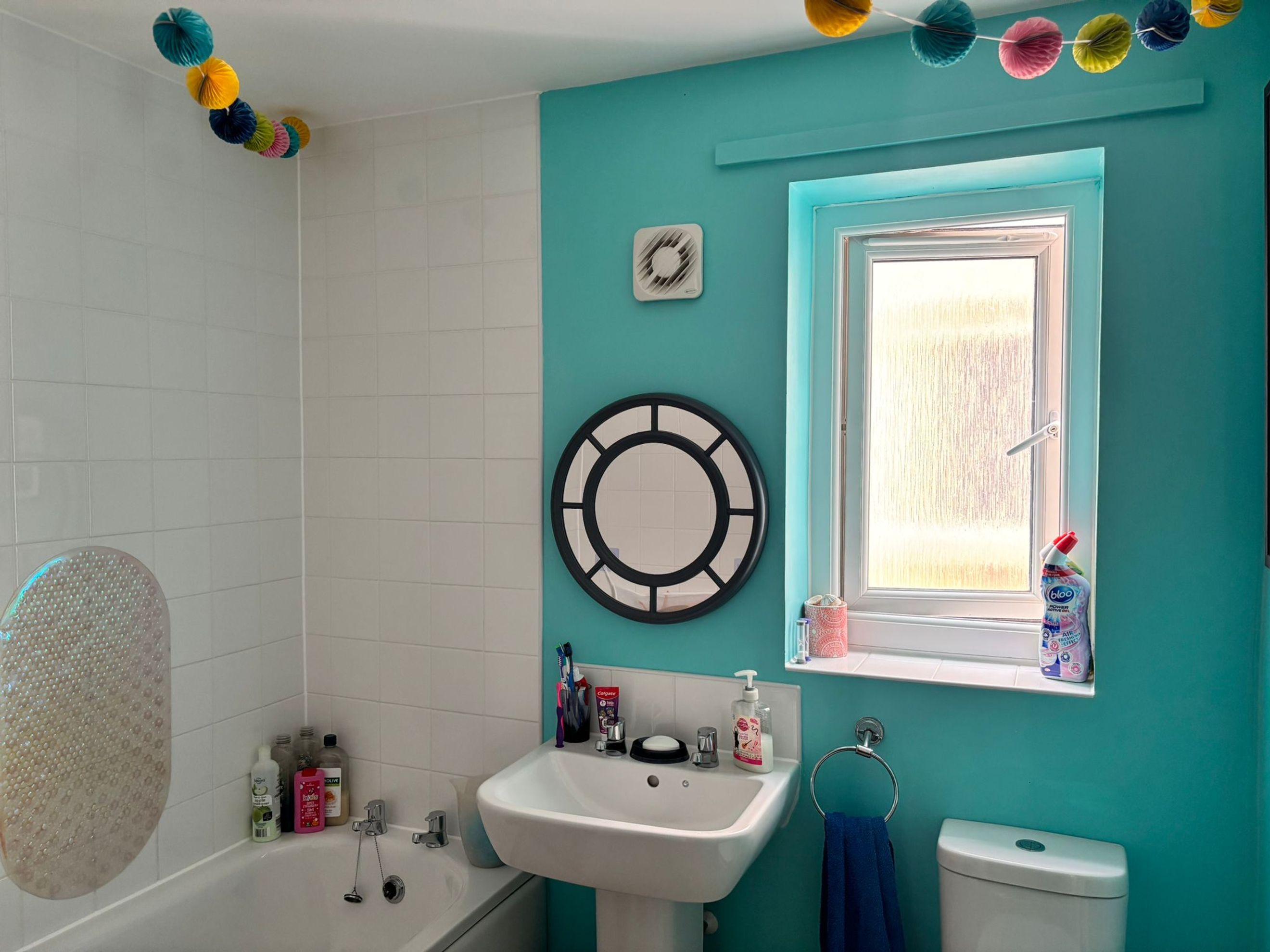 On the first floor, there are three good-sized bedrooms, one of which includes an en-suite bathroom and storage space. There is also the main bathroom on the first floor, with a white suite throughout.