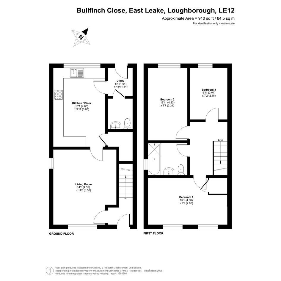 The ground floor comprises a spacious living room, a separate modern fitted kitchen (fully integrated fridge/ freezer, dishwasher and washing machine), a utility area and a toilet. On the first floor, there are three good-sized bedrooms and a bathroom.