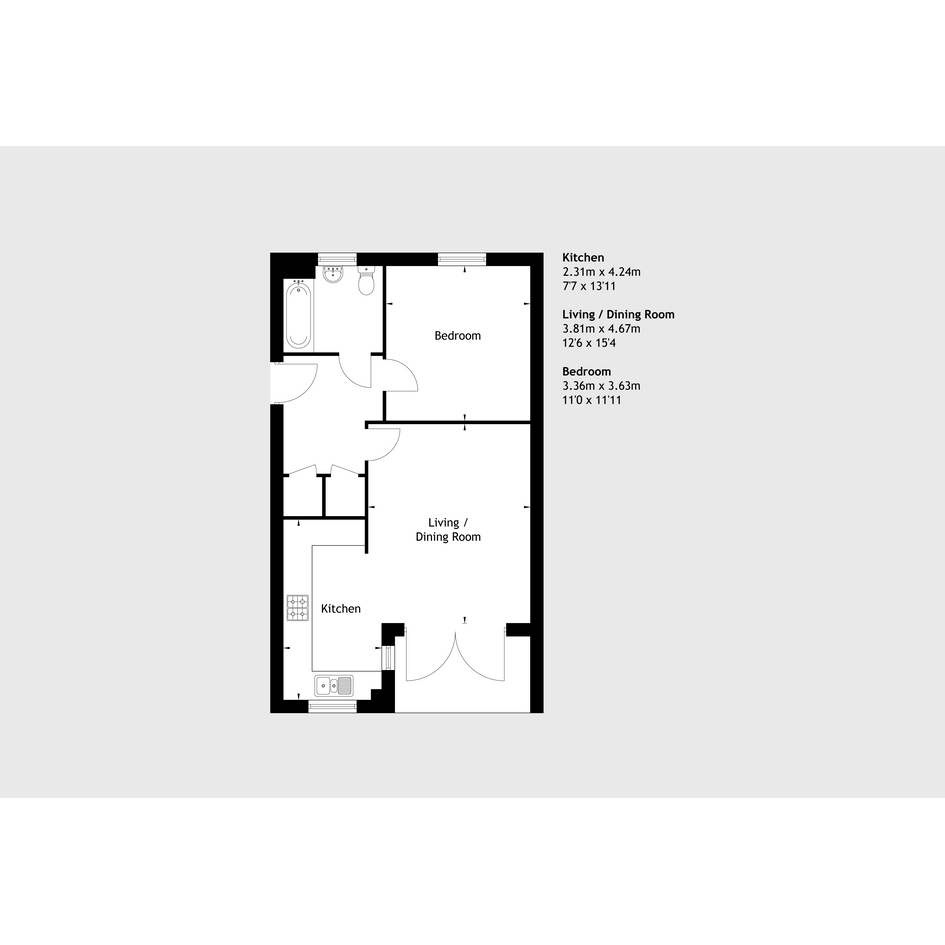 Featuring a spacious, open-plan living area with doors to your own podium. The kitchen is fitted with an oven, hob and extractor fan.
