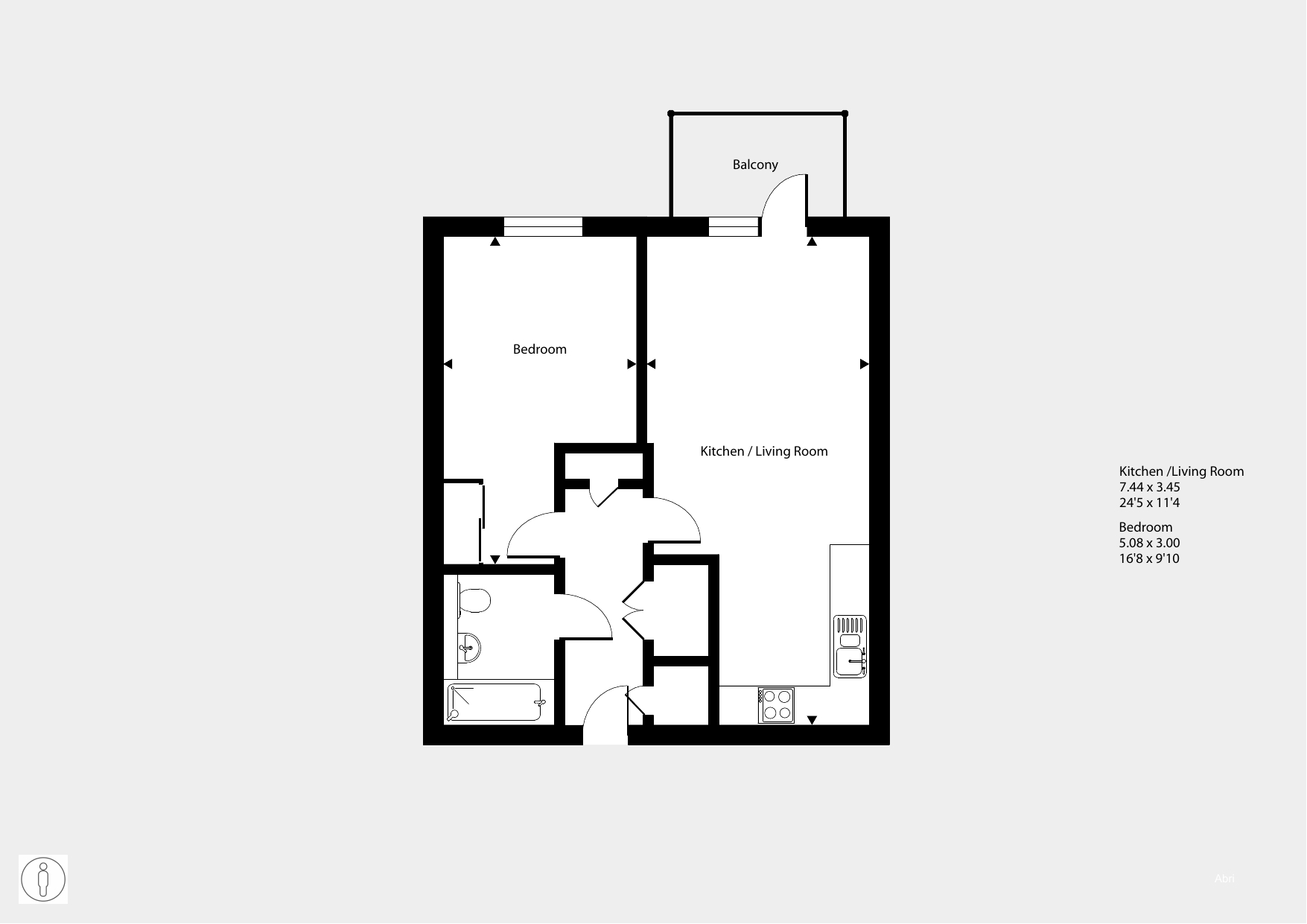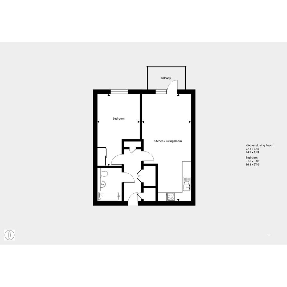 Featuring an open-plan living / dining area with doors to your balcony. The kitchen is fitted with an integrated oven, hob and hood. There is one double bedroom with storage. The bathroom has a modern, white suite.
