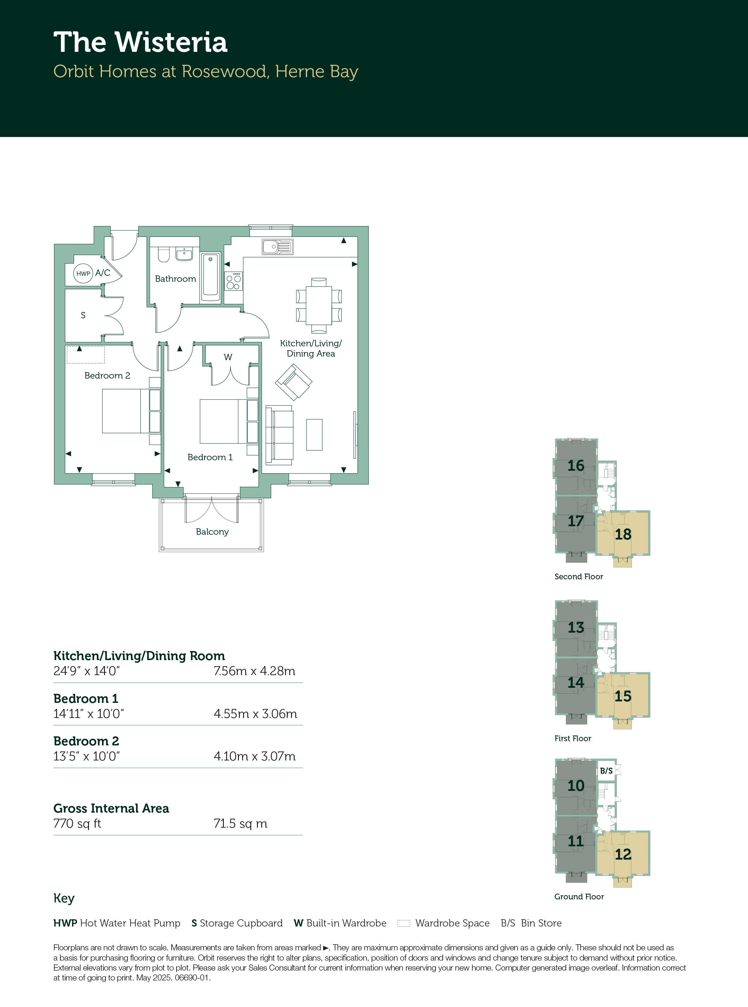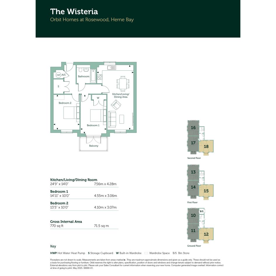 The Wisteria is an elegant and well equipped two-bedroom apartment, located at the front of the development and with access to a central landscaped communal garden. Designed for those who appreciate open, airy living, this home is on the top floor and is sold with an allocated parking space to the rear of the block with a pillar EV charger.