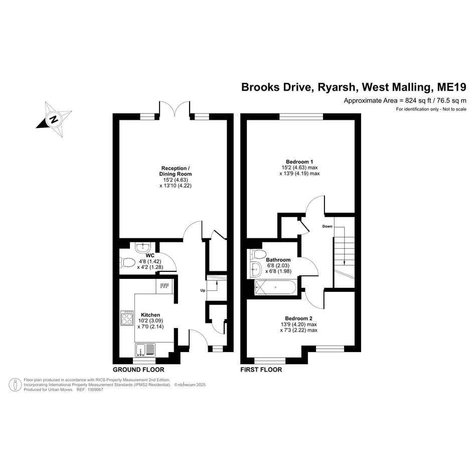 This smartly-presented property forms part of a modern terrace and features a good-sized kitchen at the front, a central cloakroom and, at the rear, a spacious reception/dining room with attractive flooring. Patio Doors open onto a south-east-facing garden. Upstairs, on the first floor, there is a large main bedroom plus a second double bedroom and a sleek bathroom. Well insulated walls, roof and floor, high performance glazing and gas central heating all contribute towards a very good energy-efficiency rating. The house comes with a parking space and the nearby roads provide a direct route into London or towards the south/east coast. Ryarsh Primary School is highly rated and within easy walking distance.