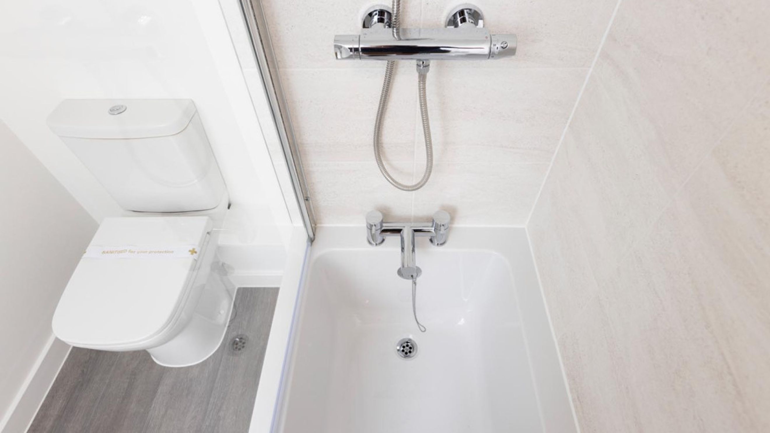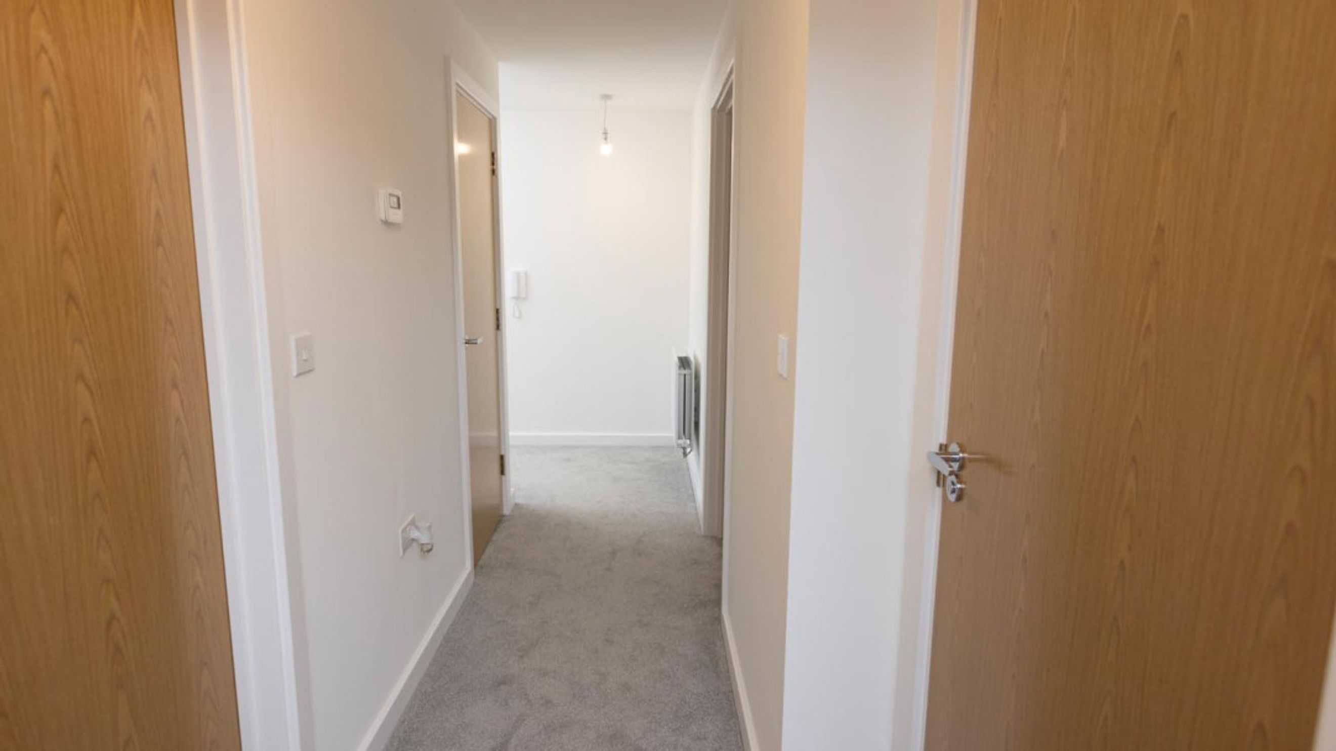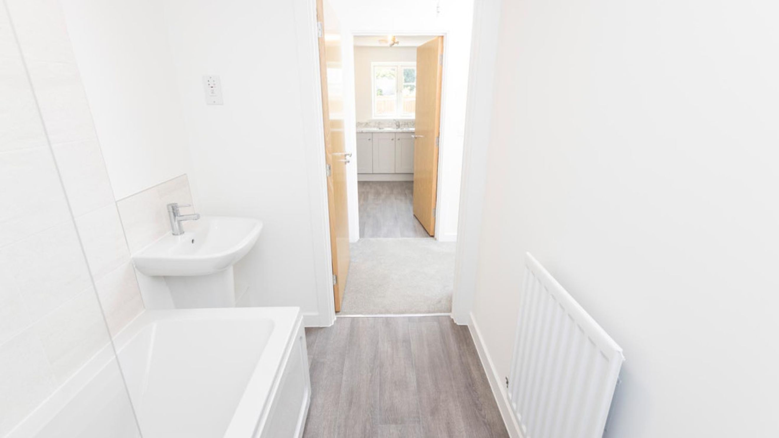 Bedroom one is located next to the living/dining room, next to this is the bathroom with bedroom two next to the bathroom.