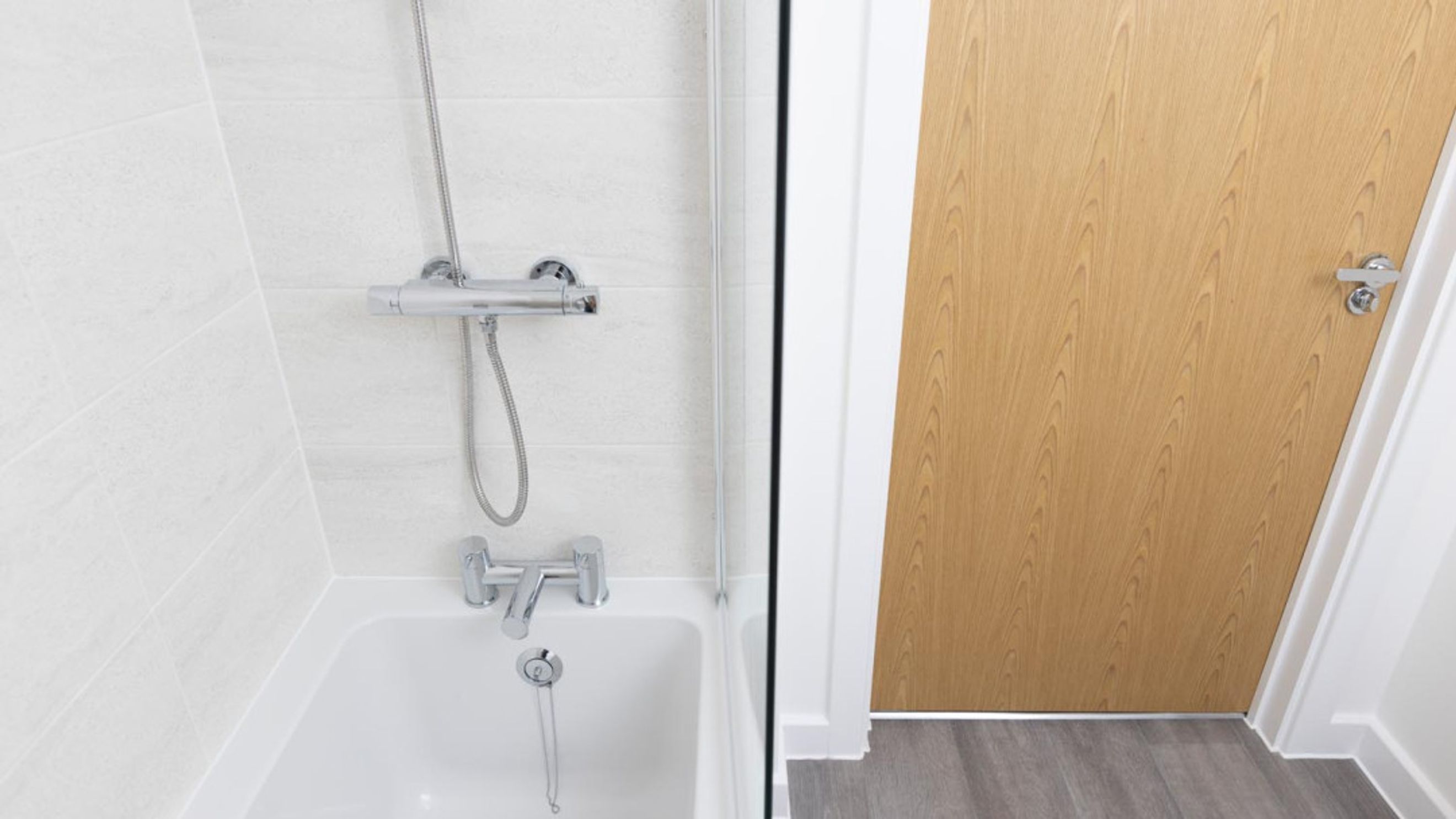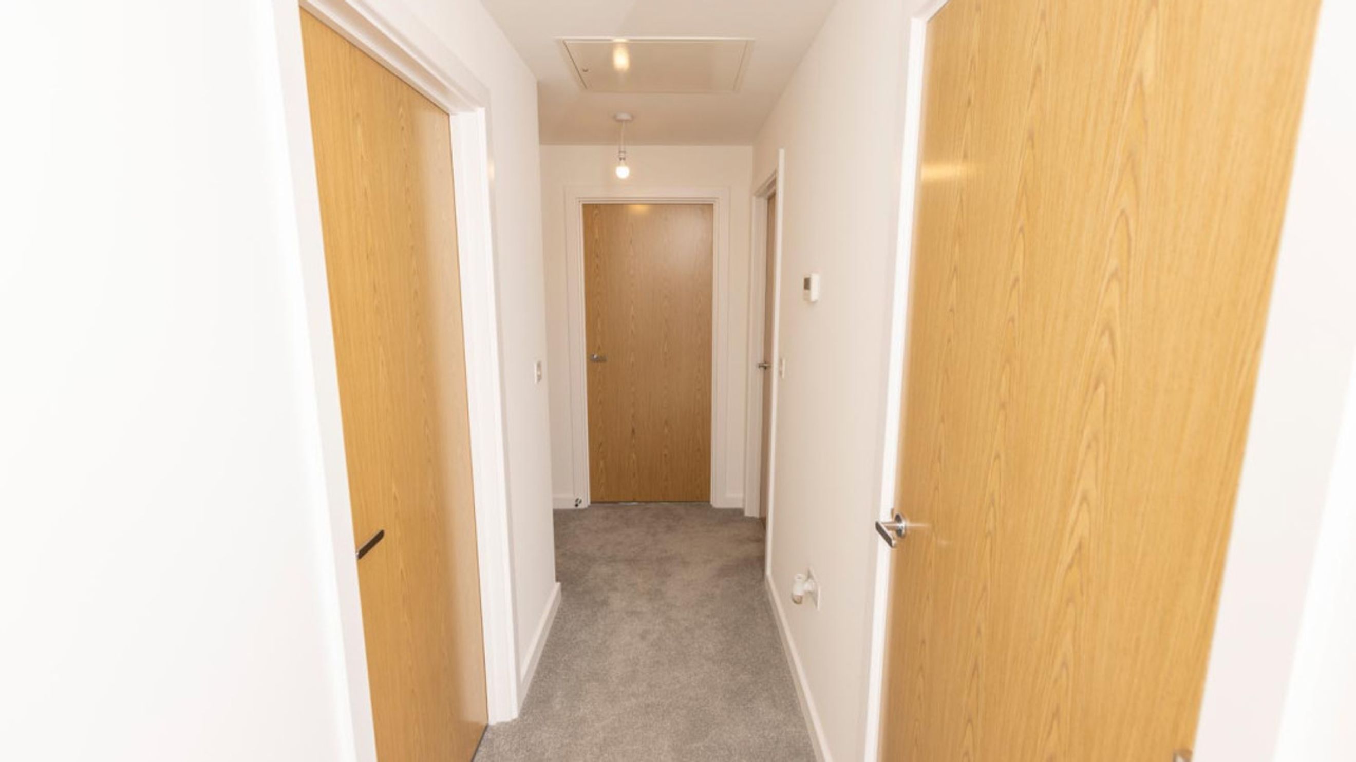 Bedroom one is located next to the living/dining room, next to this is the bathroom with bedroom two next to the bathroom.