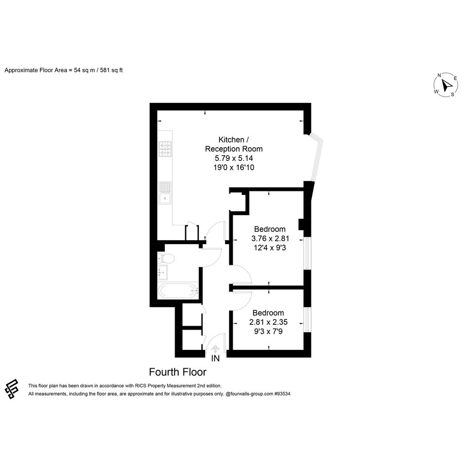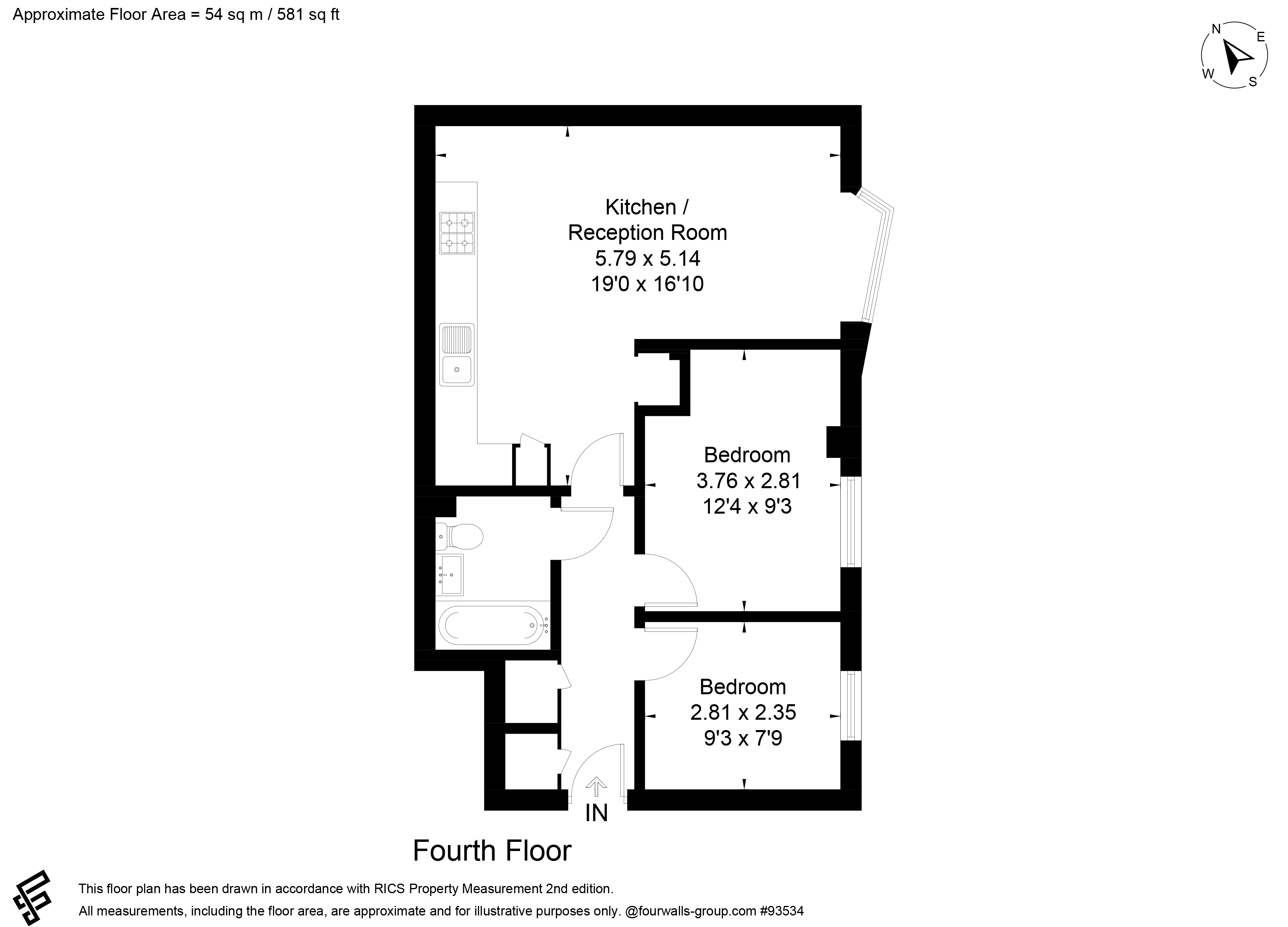 Floor Area: Approx. 54 sq m / 581 sq ft