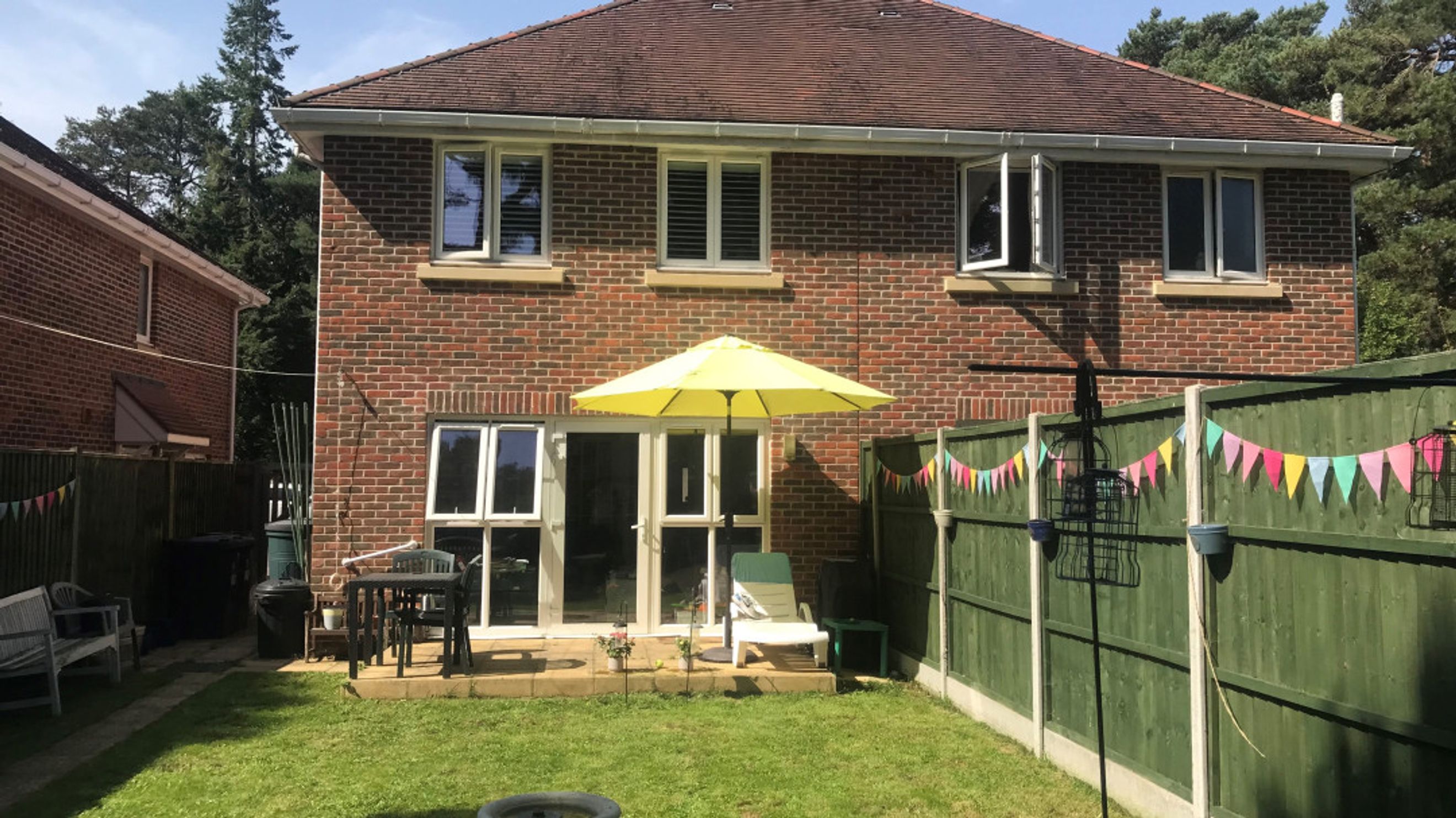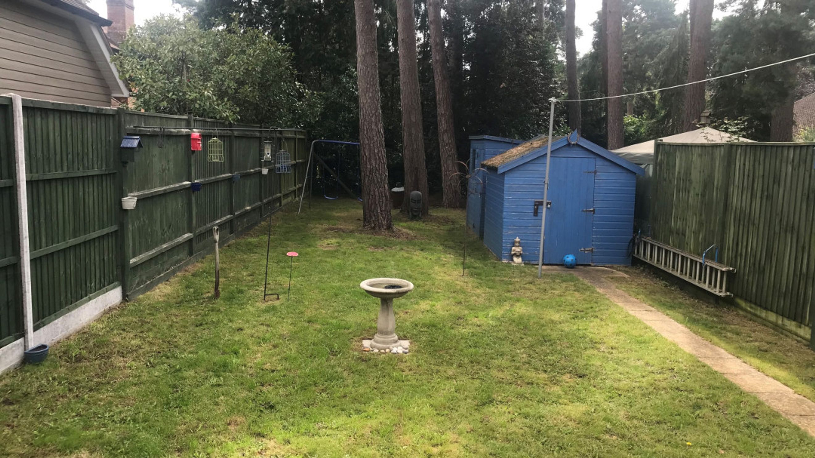 Outside, the rear garden is a generous space laid to lawn, with a patio area and mature trees. Additional features include two sheds, outside tap, and an outdoor power sockets.