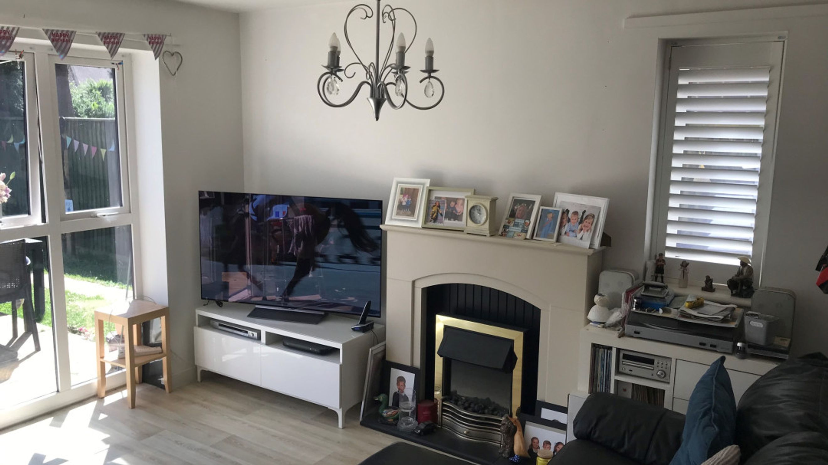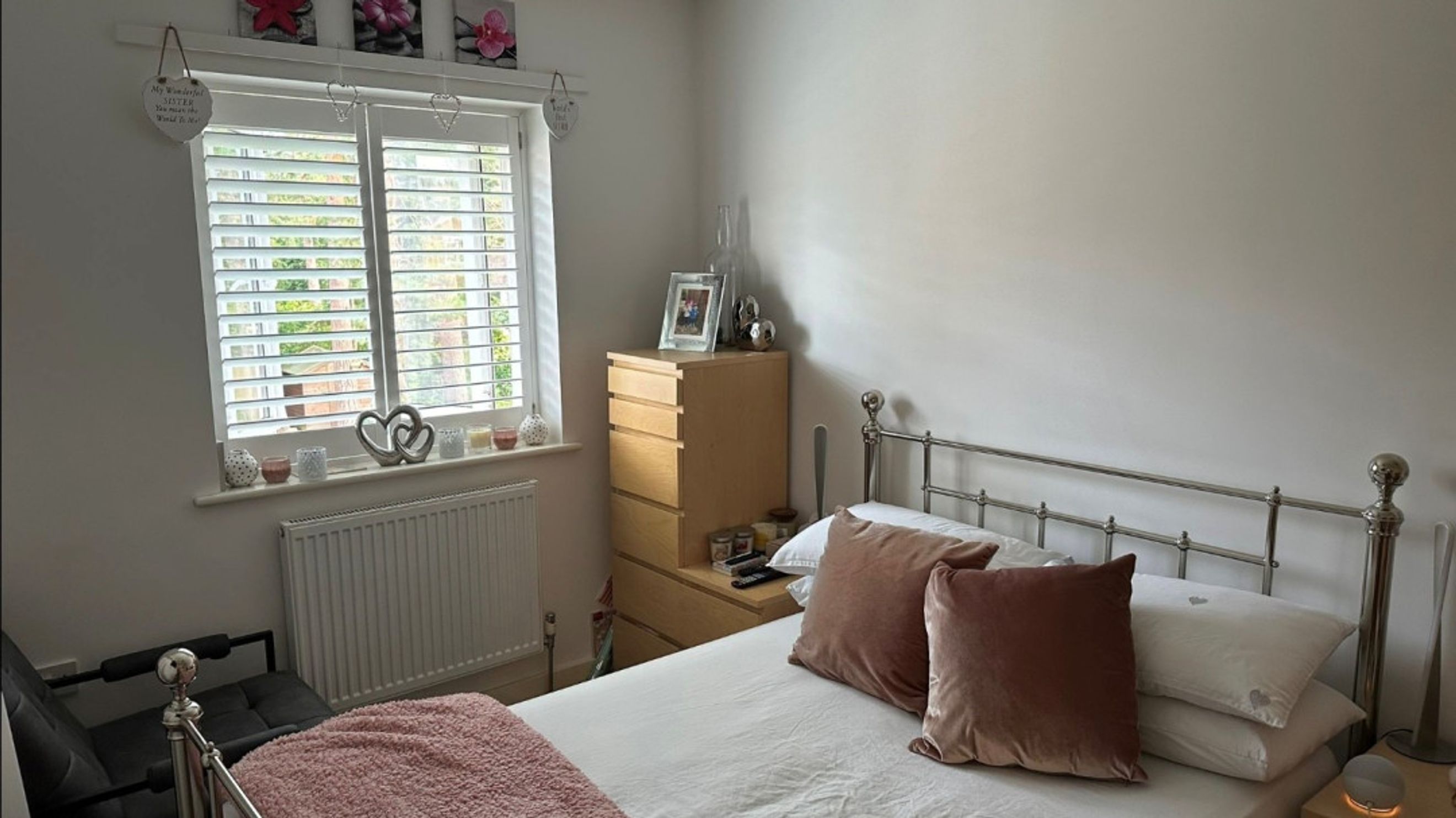 As you step through the front door, you are greeted by the entrance hallway of this stunning home, featuring the staircase, a handy downstairs WC, and understairs storage. The neutral décor throughout is beautifully complemented by light wood-effect laminate flooring on the ground floor and in the bathroom, while a cream carpet is fitted to the stairs, landing, and all three bedrooms. Quality shutters are fitted throughout, highlighting the modern and practical features of this home.